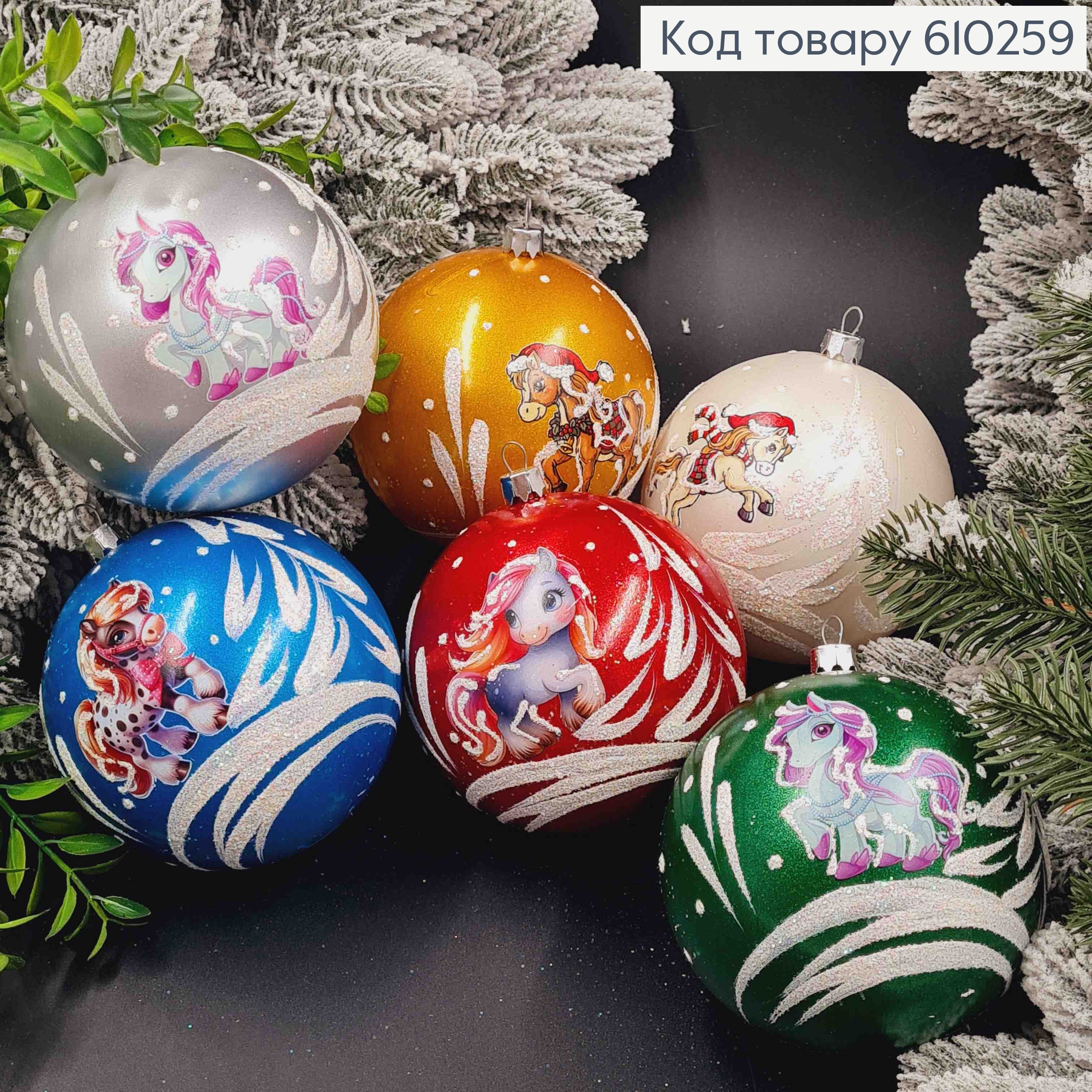 Игрушка шар (1шт), 100мм "КРАСКА" символ года - "КОНЬ", новогоднее украшение в асорт., Украина