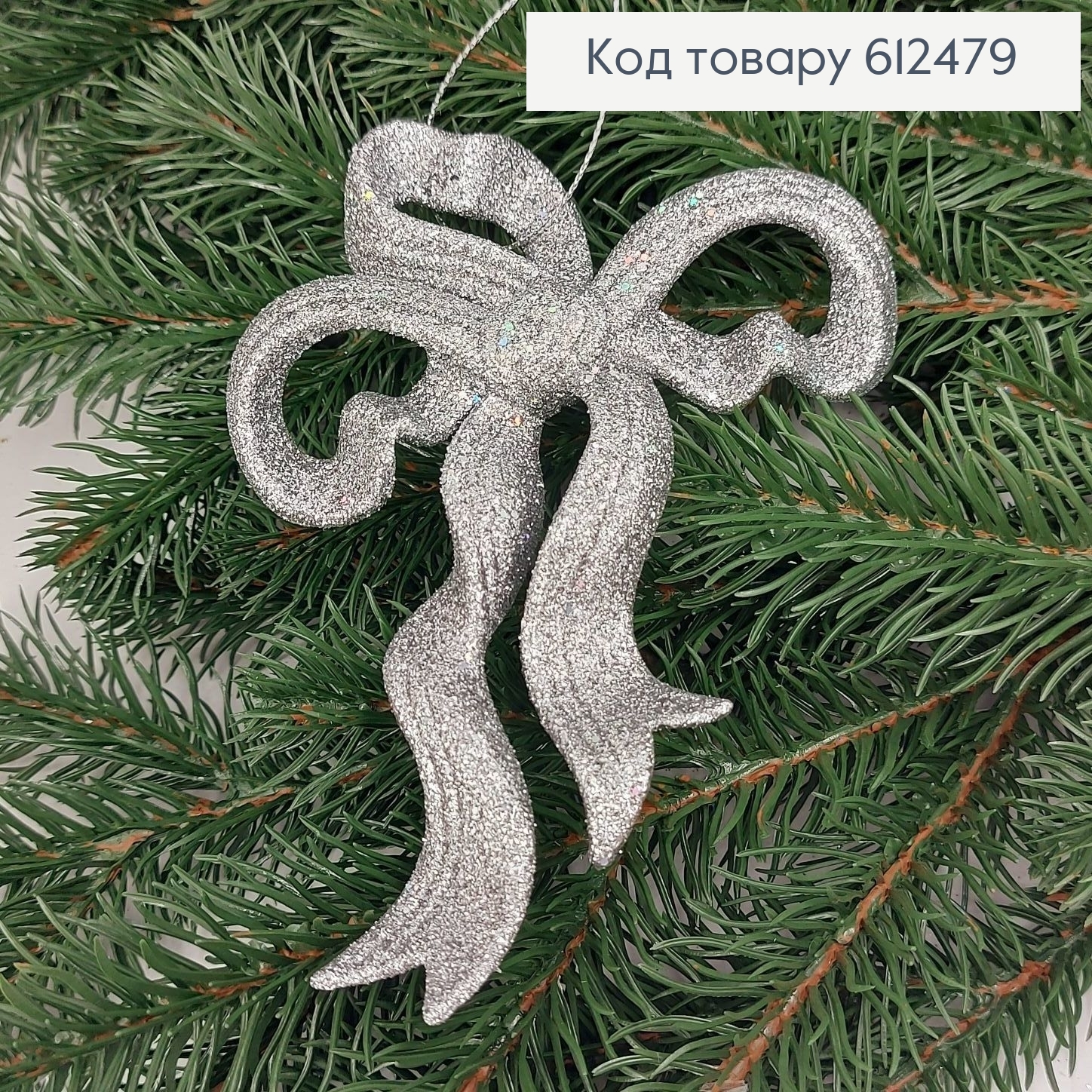 Новогодняя фигура Блеск Бантик СЕРЕБРО, 14,5*10,5см, Украина