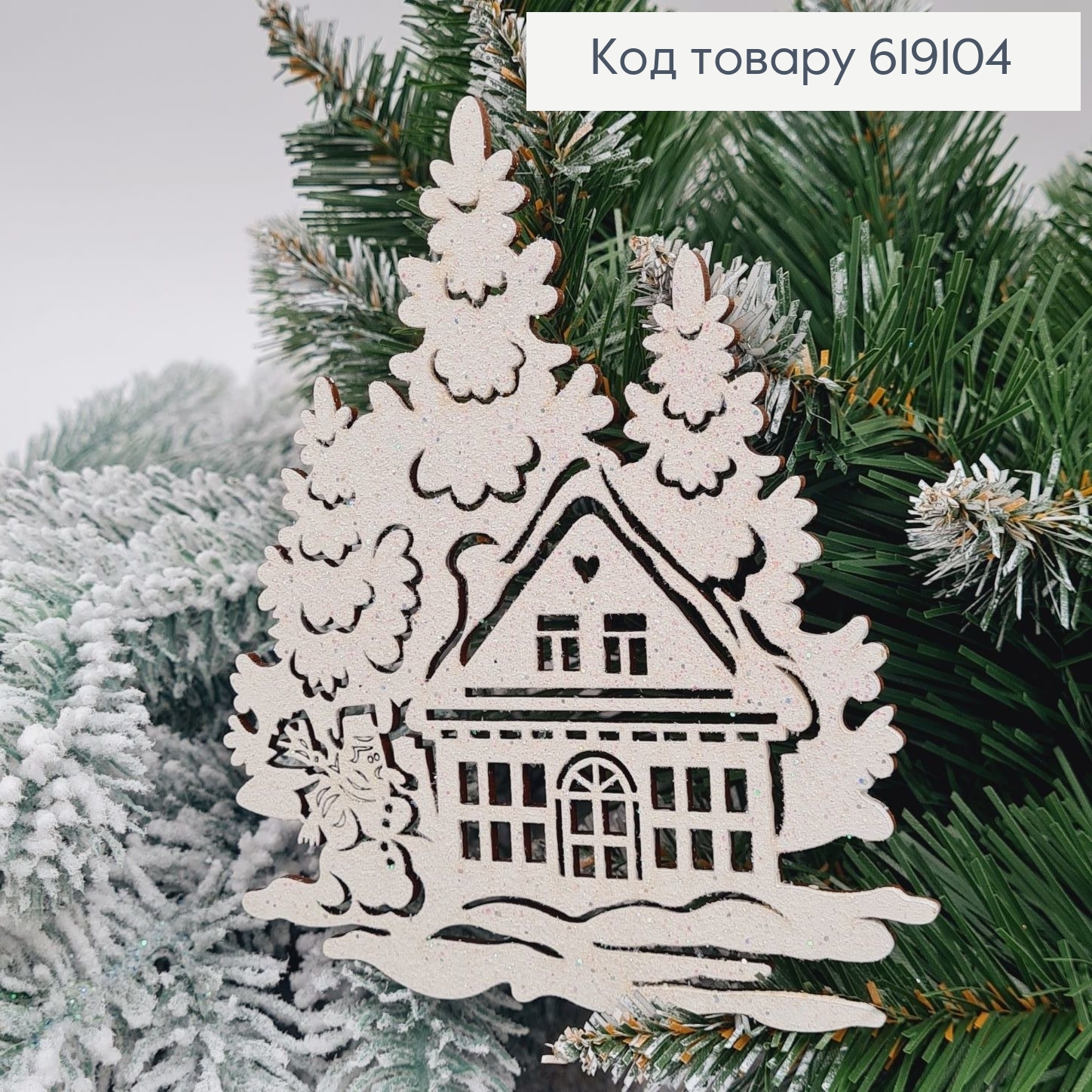 Игрушка на елку деревянная Домик в лесу, БОЛЬШАЯ 14*11,5см, Украина