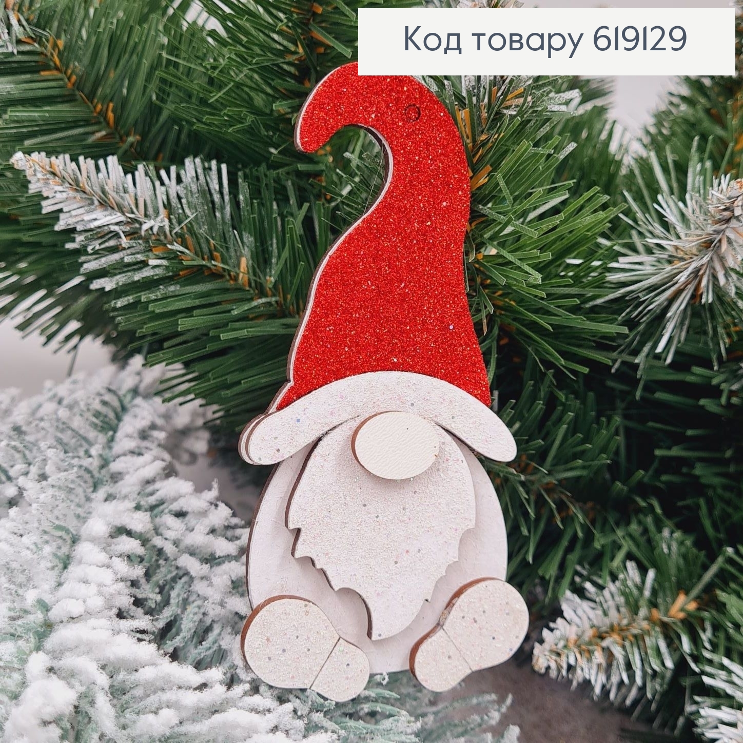 Ігрушка на елку деревянная Дед Мороз с красной шапкой, 12*5,5см, Украина