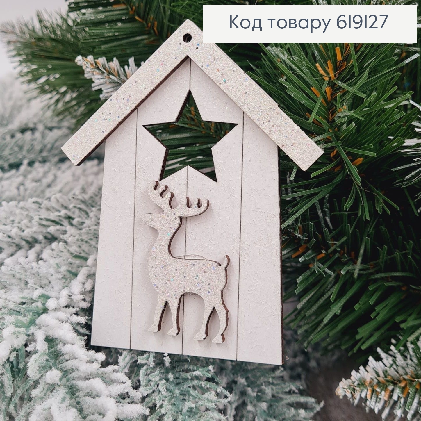 Игрушка на елку деревянная Кормушка с оленем, 10*6,5см, Украина