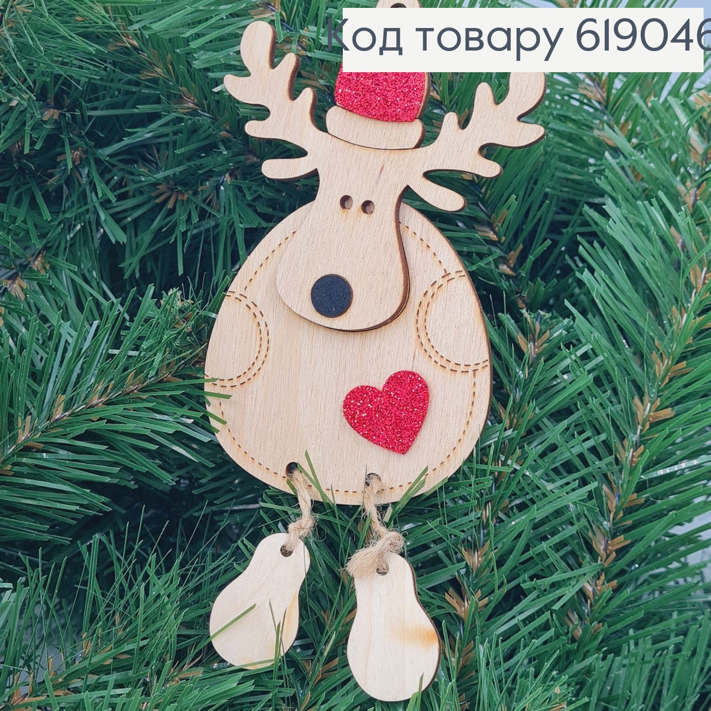 Игрушка на елку деревянная Олень с висящими ногами и красной шляпой18*8 см