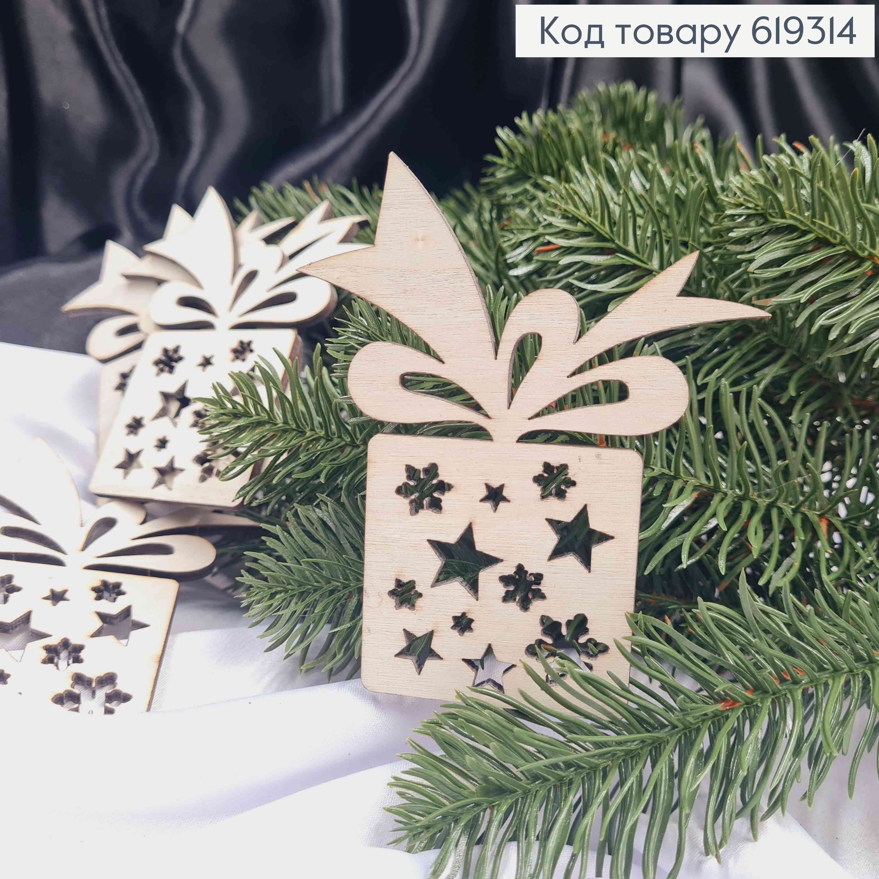 Игрушка на елку деревянная ПОДАРКОВАЯ КОРОБКА, 9,5*8см, Украина