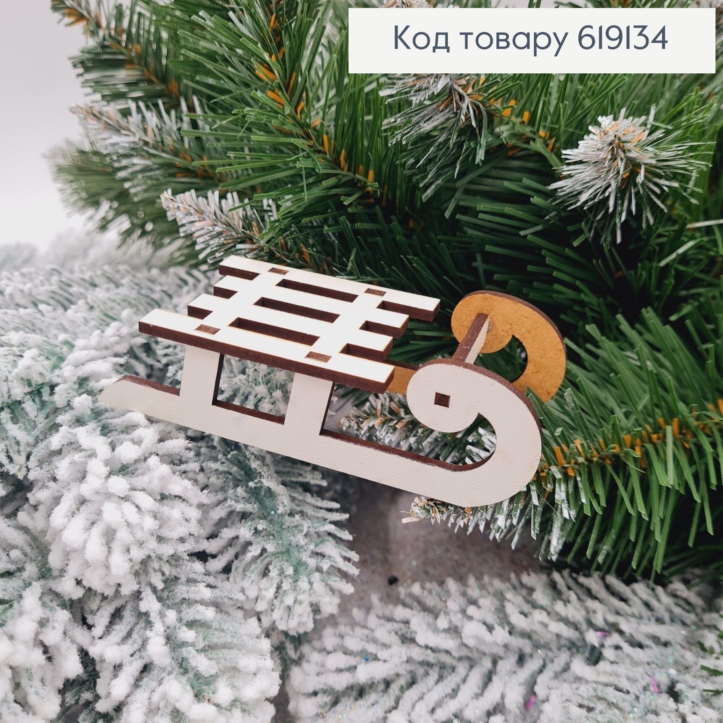 Игрушка на елку деревянная Санки малые, 11*4,5*3см, Украина