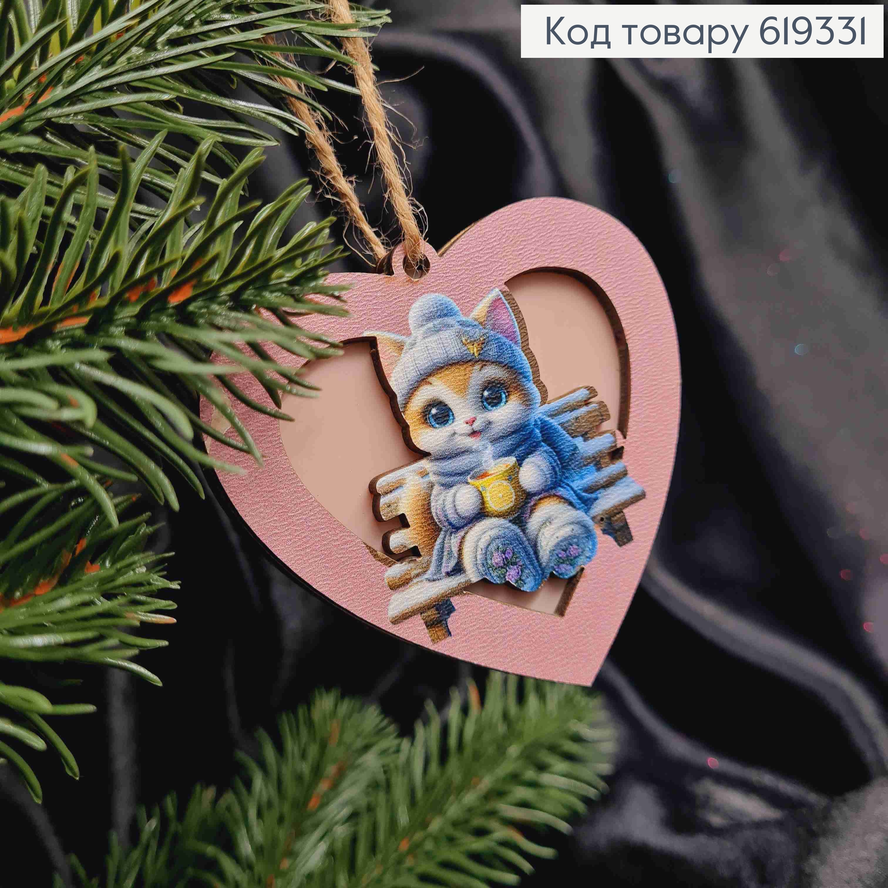 Игрушка на елку деревянная, Сердце с Котиком внутри (светится), 7,5*7*1см, Украина