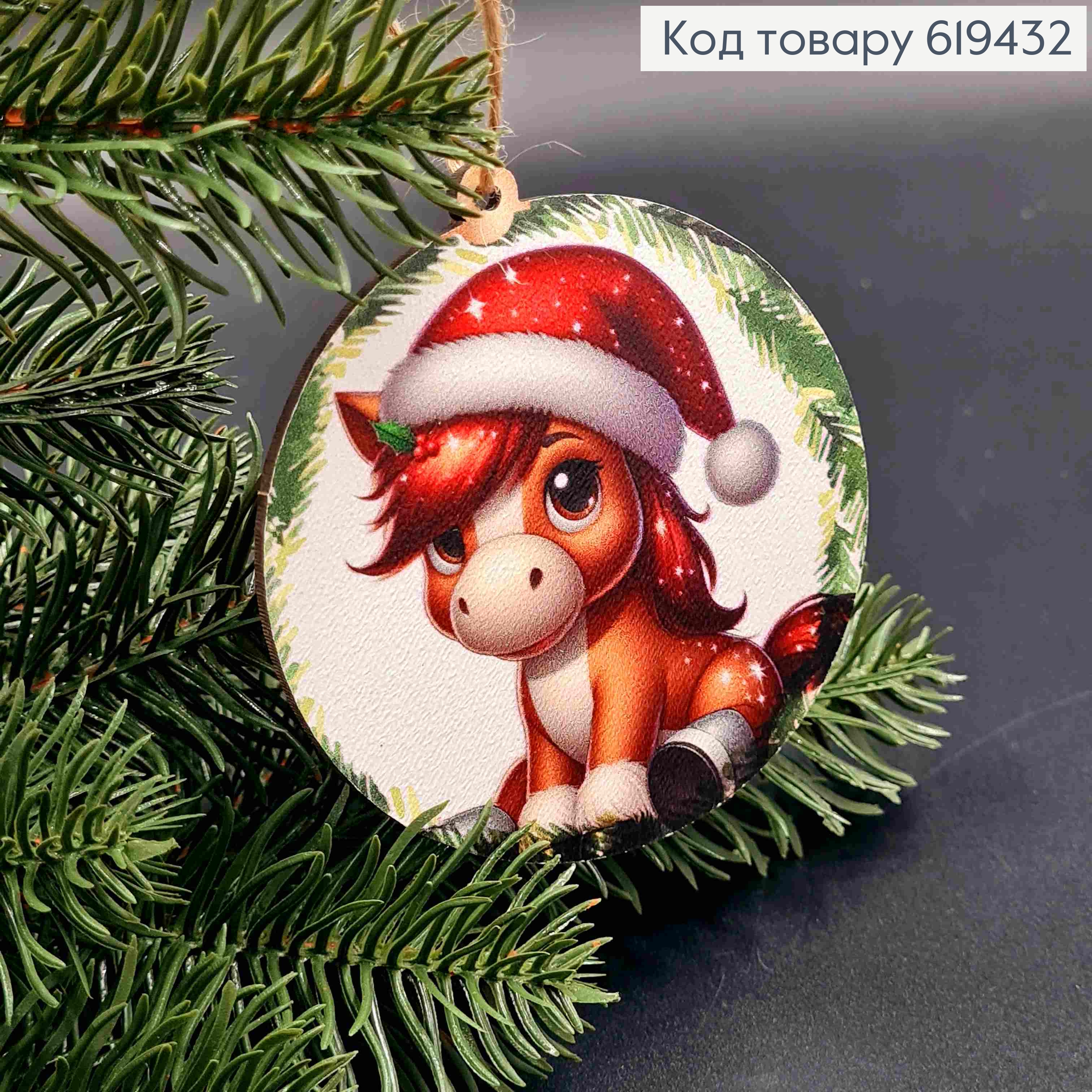 Іграшка дерев'яна з принтом "КОНЬ", діаметр 8см, ручна робота, Україна 619434 фото