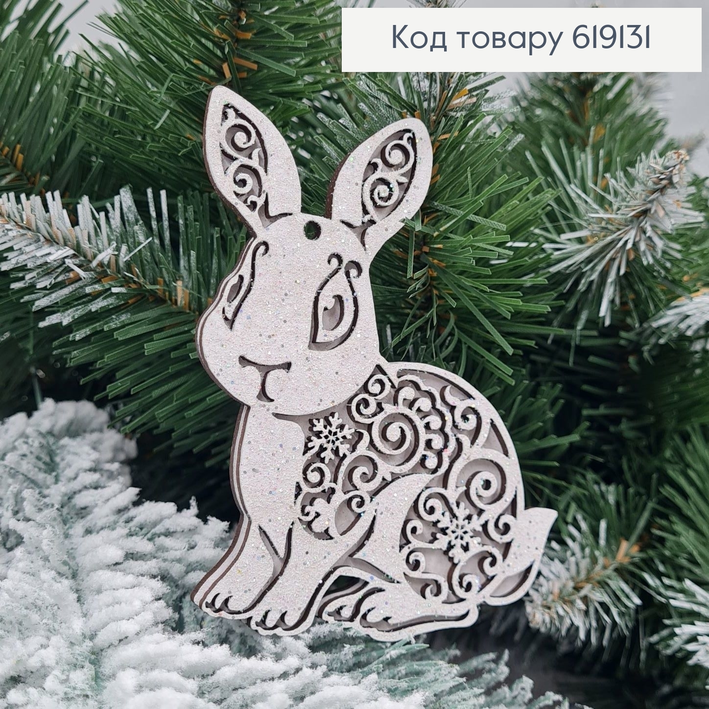 Игрушка на елку деревянная Зайчик с узорами, 11*8см, Украина