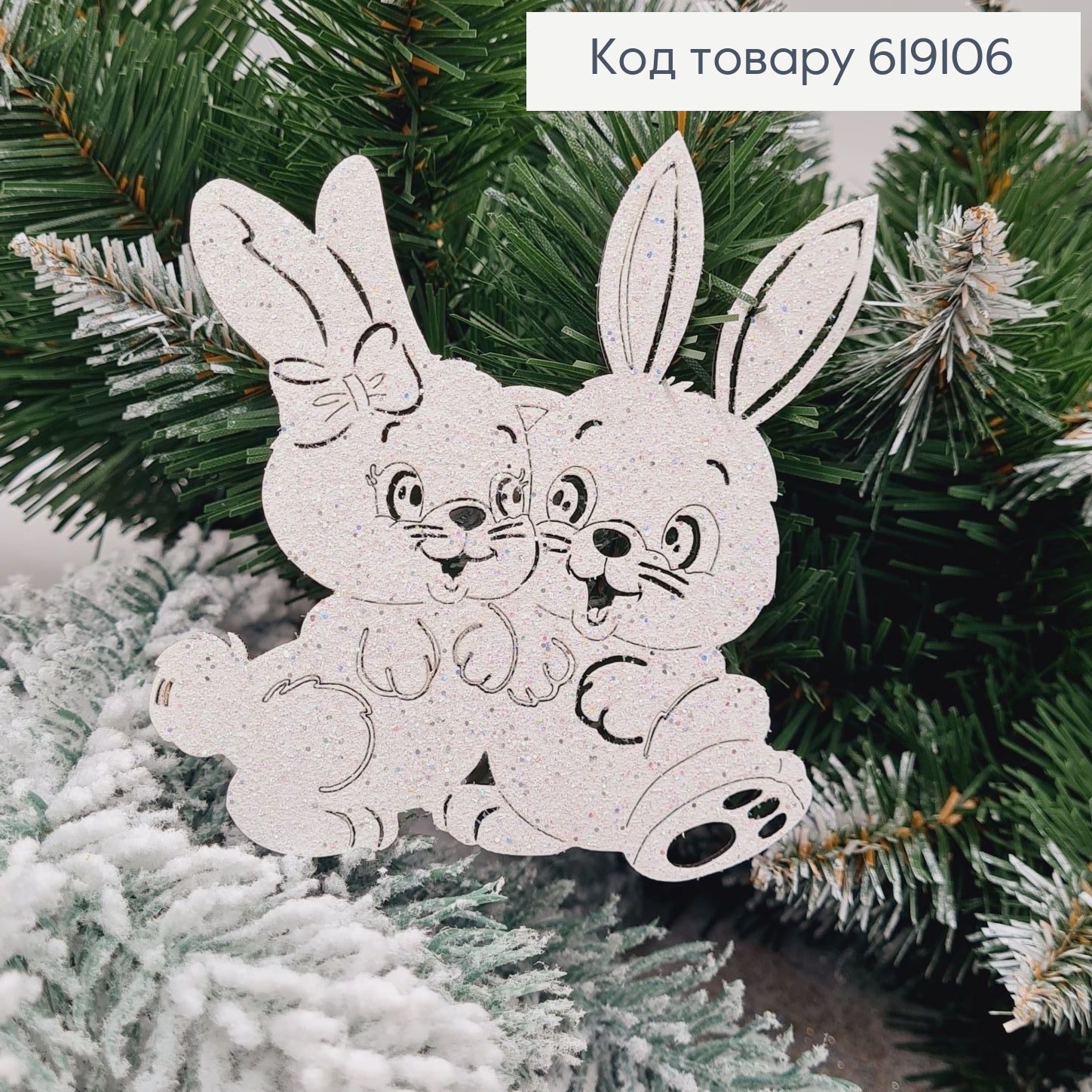 Игрушка на елку деревянная Зайчата, 11*9см, Украина