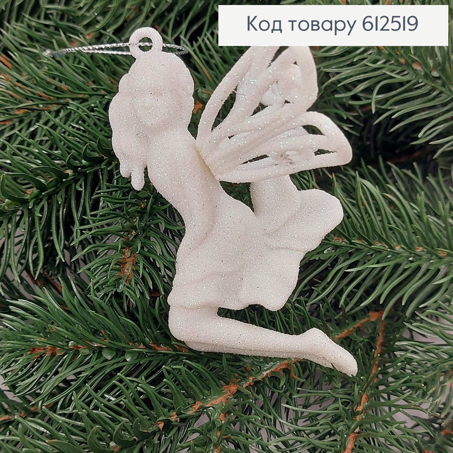 Елочное украшение Бабочка на заколке, Белого цвета+Блеск, 21*17см 620761 фото