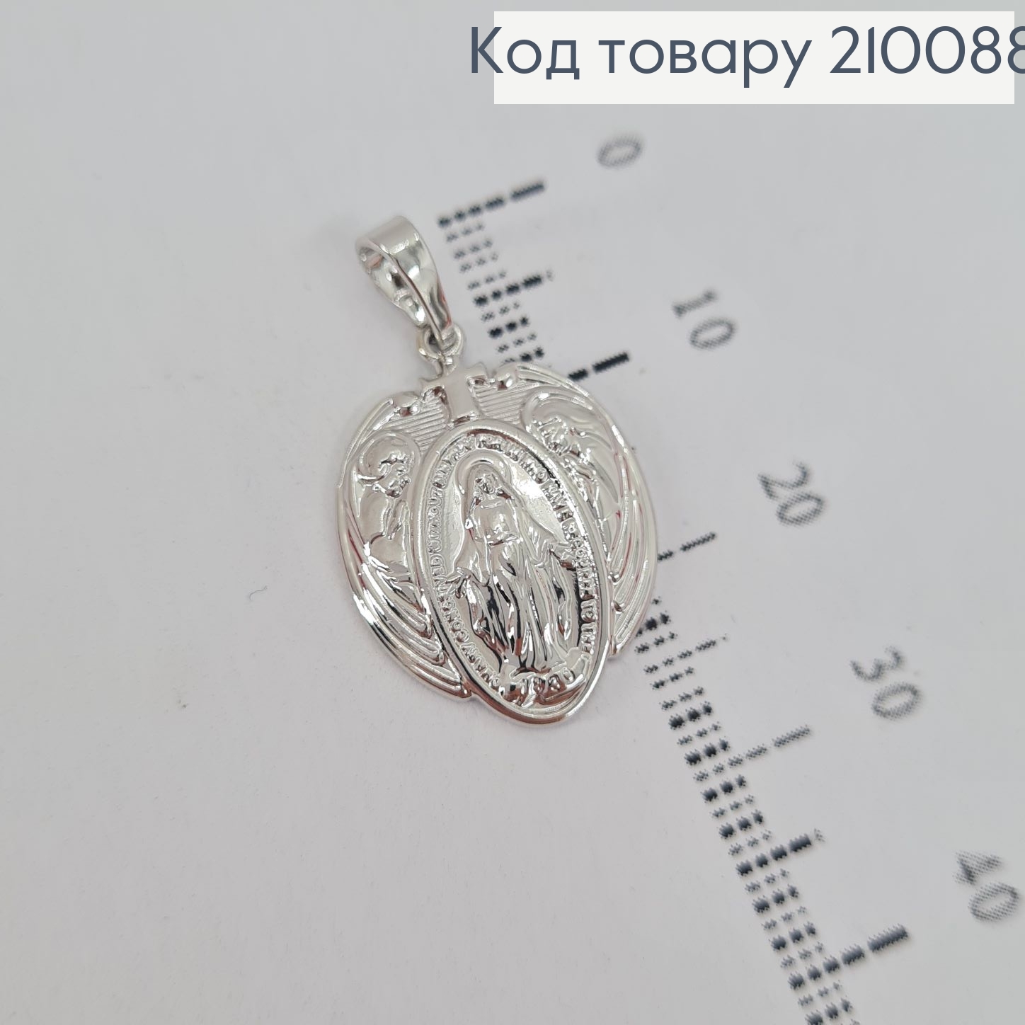 Иконка-Ладанка родованная "Божья Матерь" с Блестящими камешками по краю, 3,6см*2,5см Xuping 210267 фото