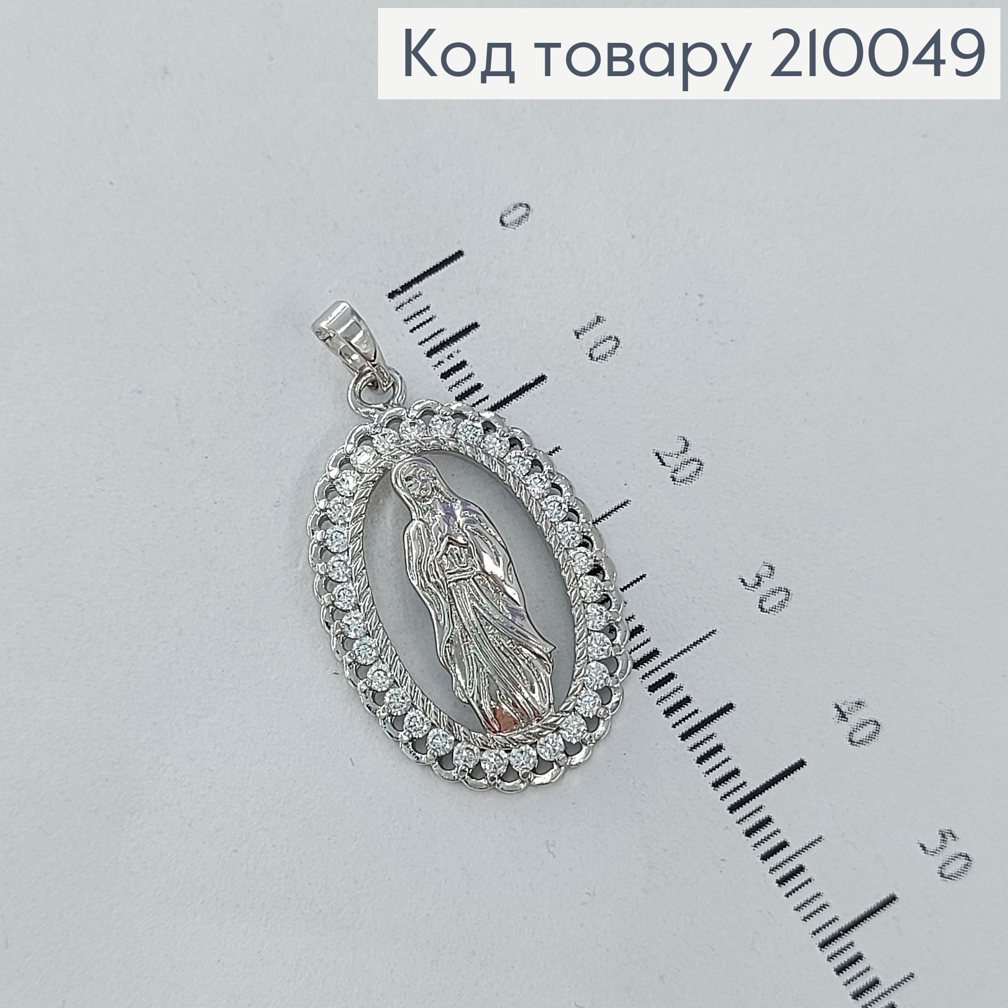 Иконка-Ладанка родованная "Божья Матерь" с Блестящими камешками по краю, 3,6см*2,5см Xuping 210267 фото