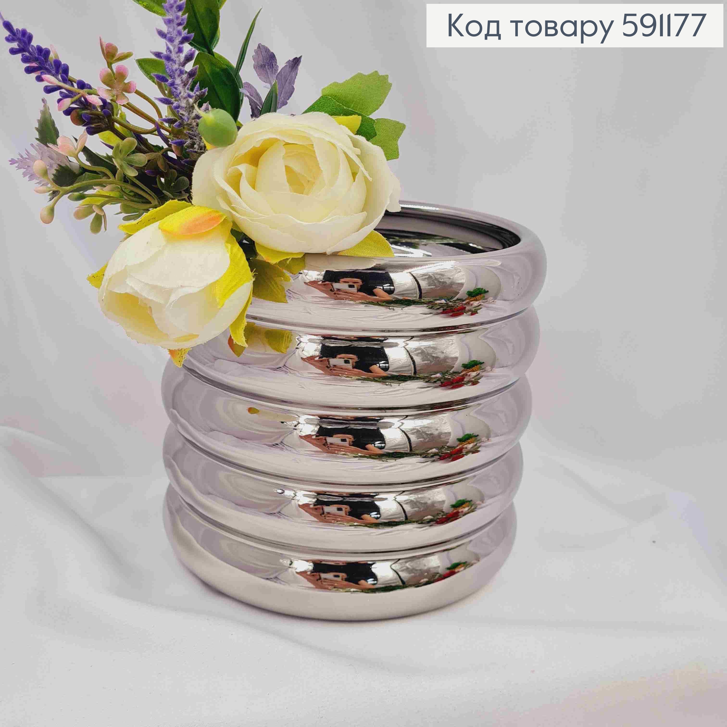 Кашпо Фактурное-Волноватое, КЕРАМИКА с покрытием Серебряного цвета, высота 12,5см, диаметр 14см, Польша