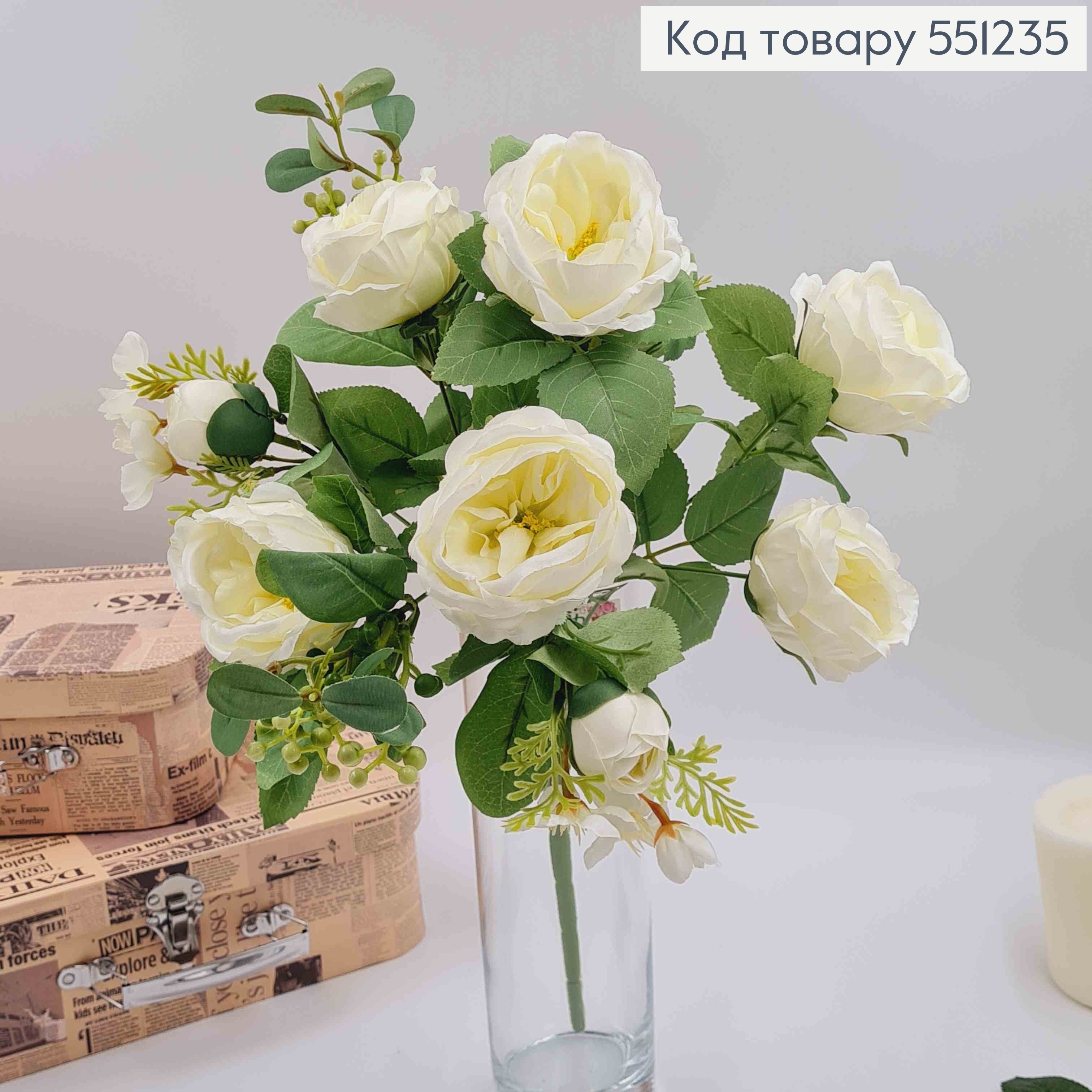 Искусственный цветок Розы, цвета АИВОРИ, высота 70см, цветок 6*7см 551566 фото