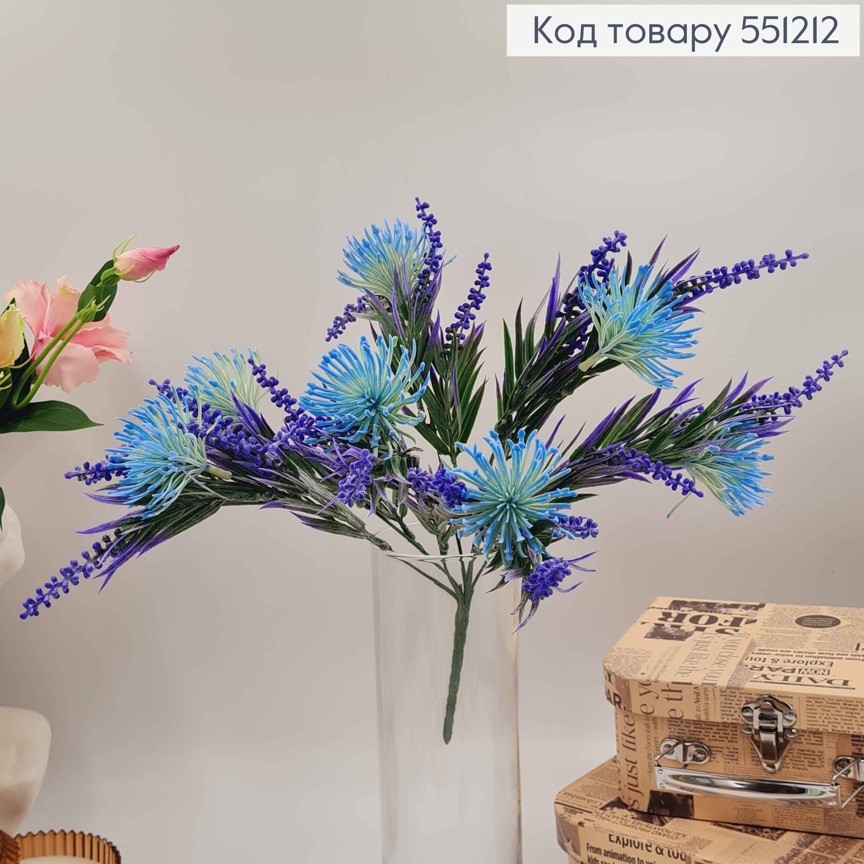 Композиция декоративная "Букет ЛАВАНДА с ГОЛУБОЙ хризантемой КУШАН", высота 37см