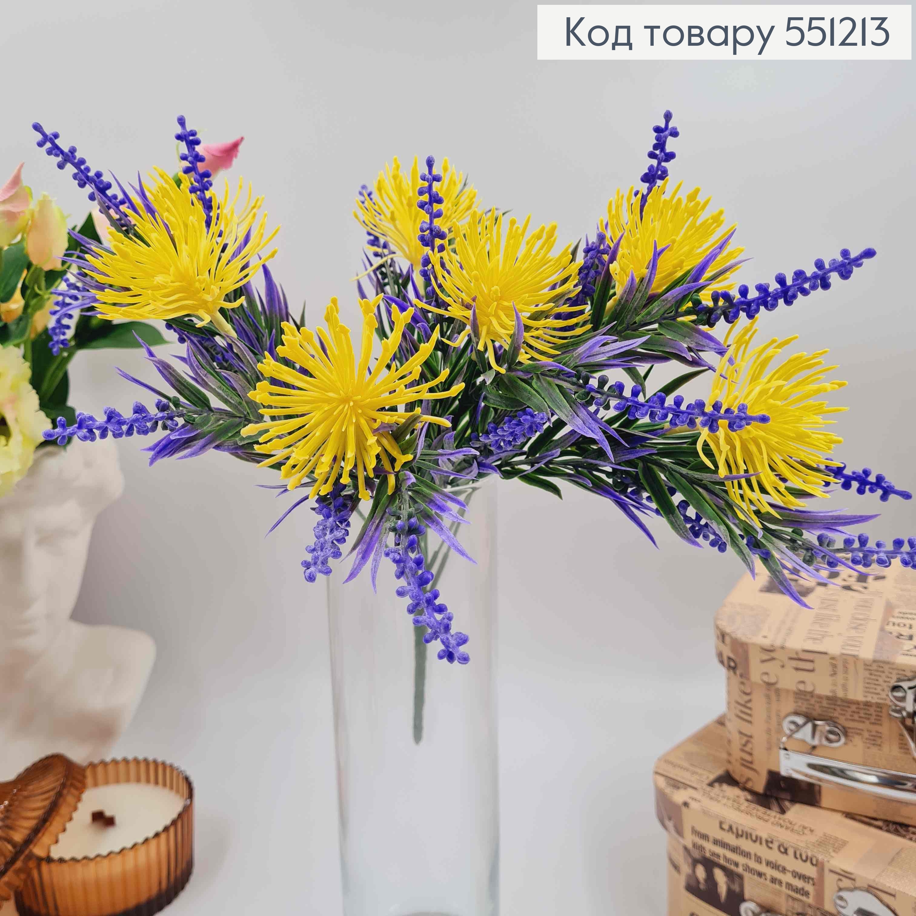Композиция декоративная "Букет Лаванда с желтой хризантемой кушан", высота 37см