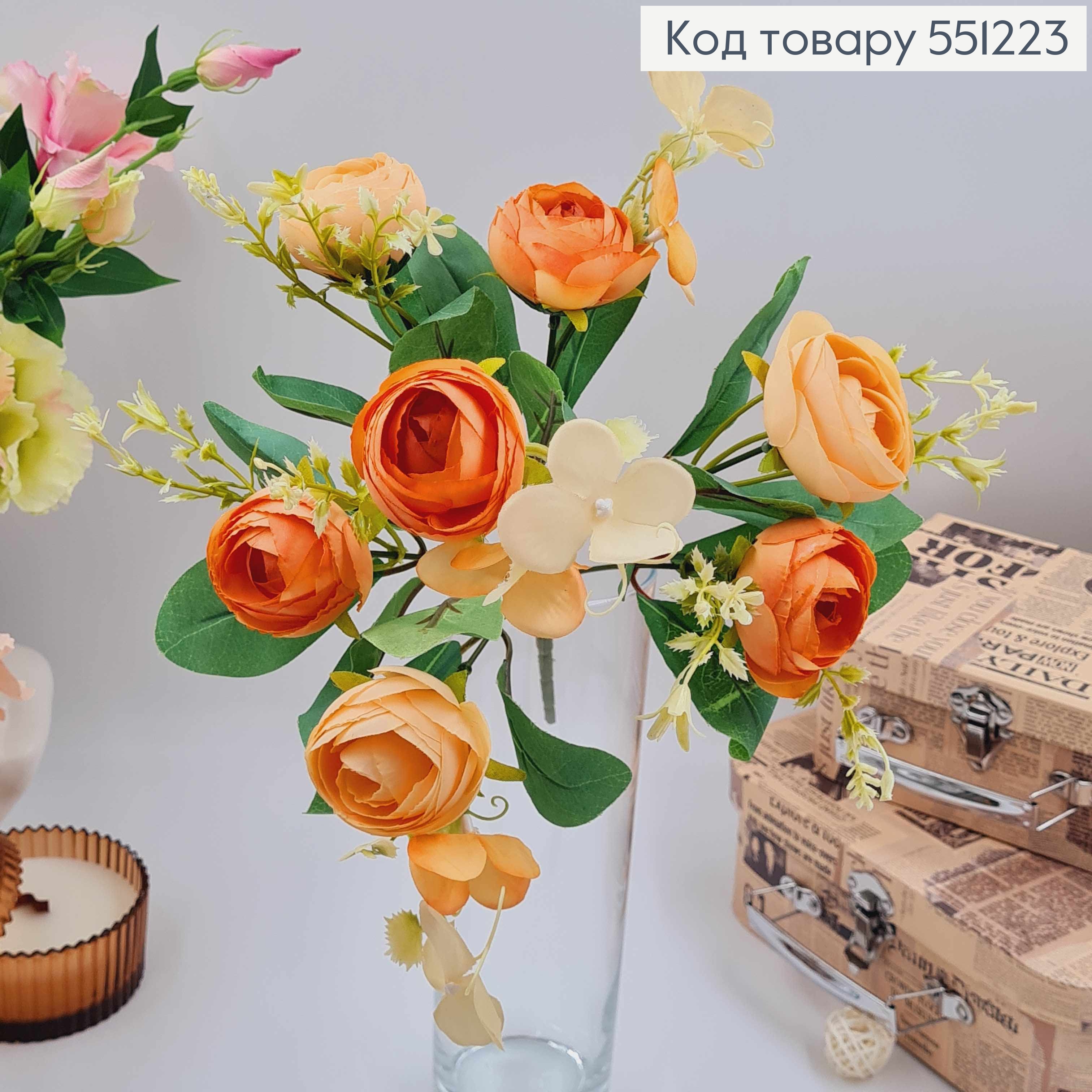 Искусственная композиция Розы, ПЕРСИКОВОГО цвета, 7 веточек на металлическом стержне, высота30см 551562 фото