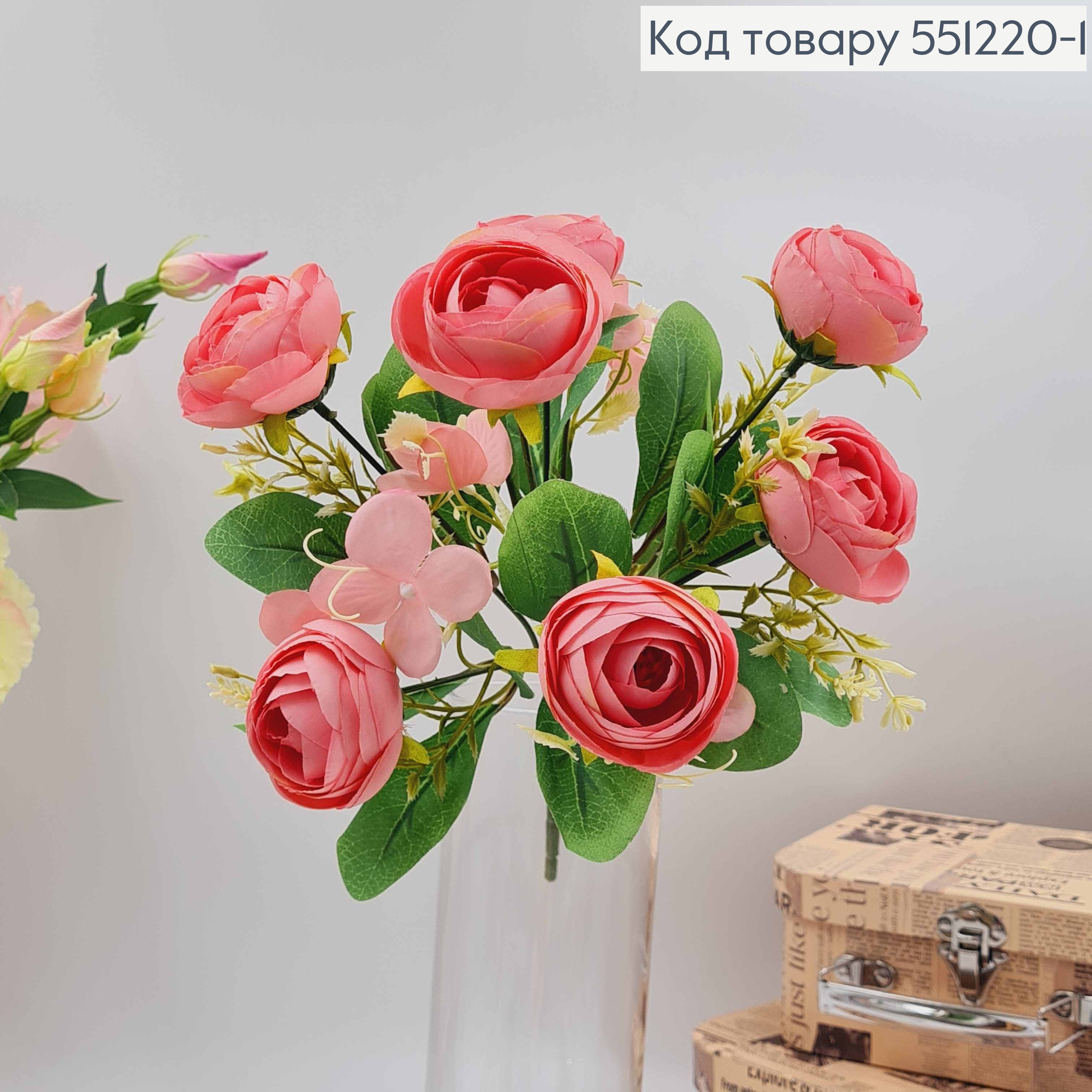 Композиция декоративная "РОЖЕВАЯ камелия (7 головок) с белыми приложениями", высота 31см