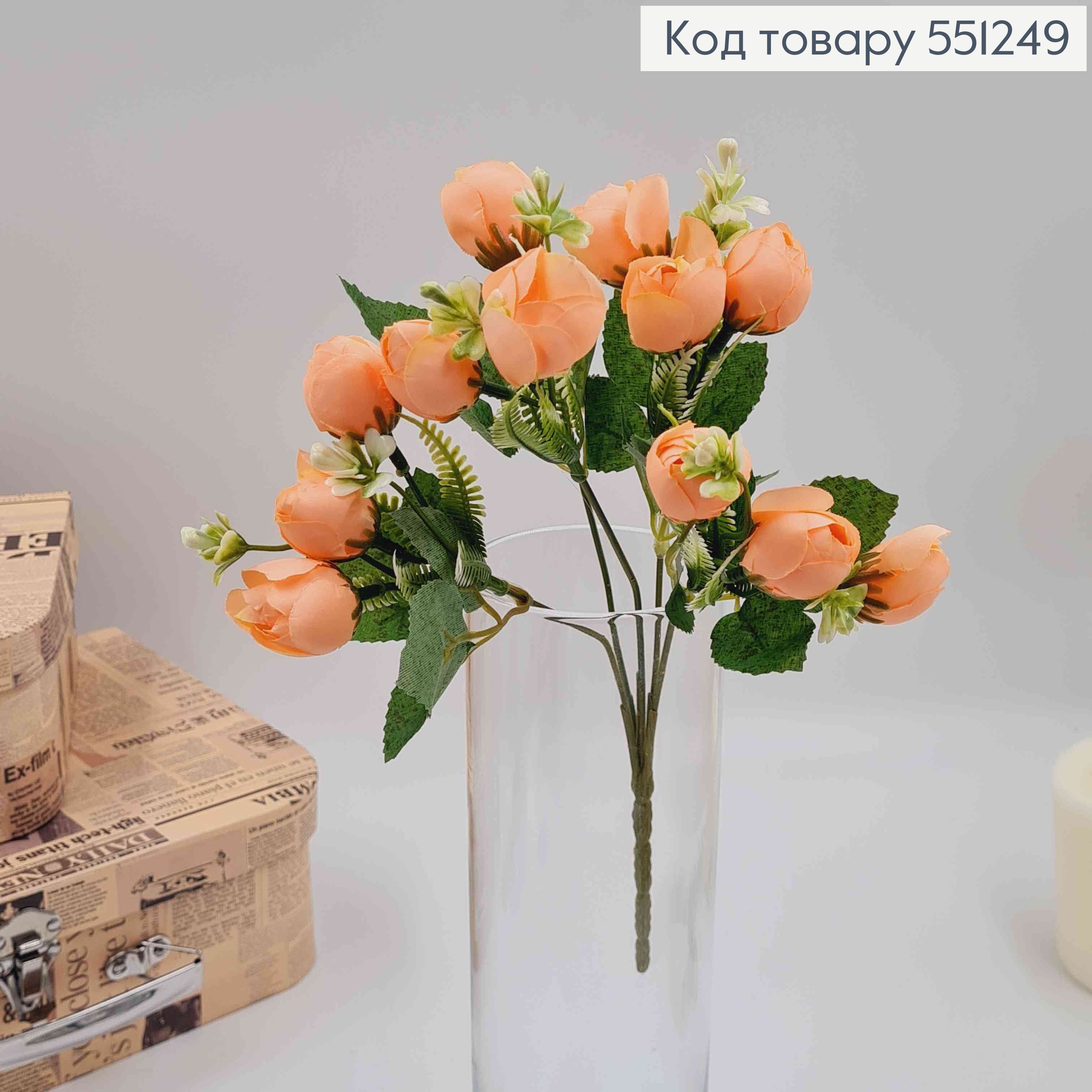 Искусственная композиция Розы, ПЕРСИКОВОГО цвета, 7 веточек на металлическом стержне, высота30см 551562 фото