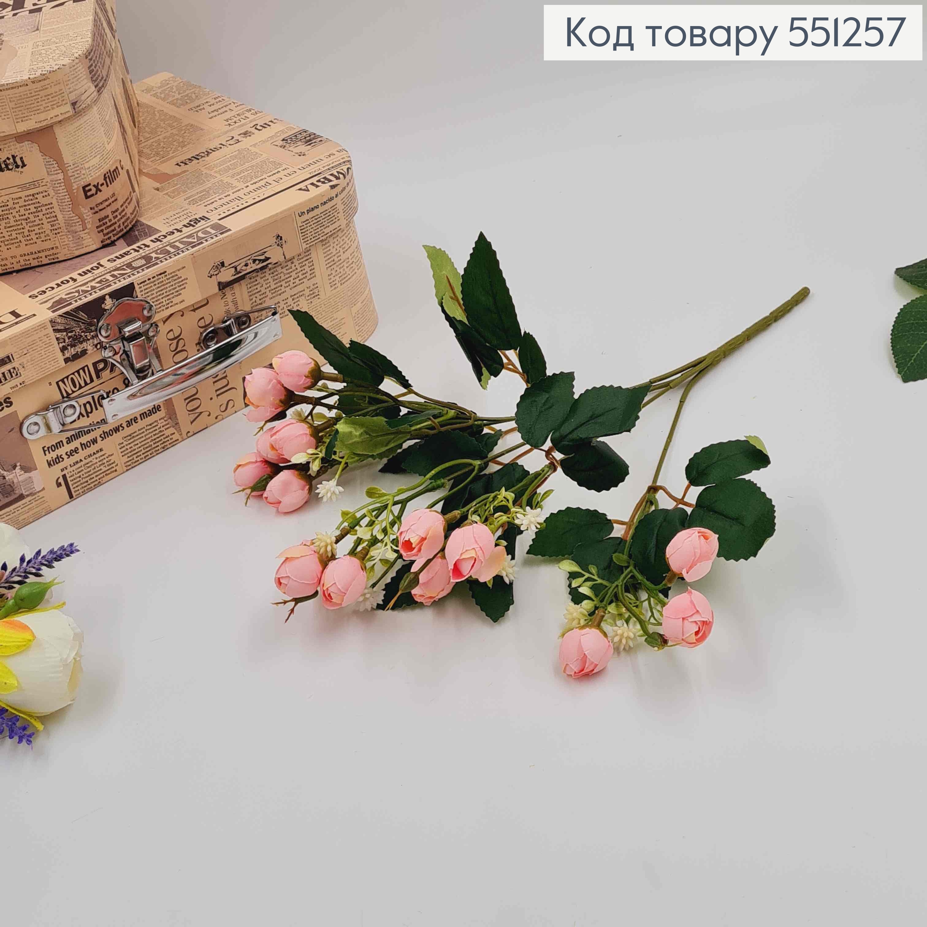 Композиция РОЖЕВАЯ "Букет мелких пионов Камелия с декором", высотой 30см, 15 бутонов по 2см