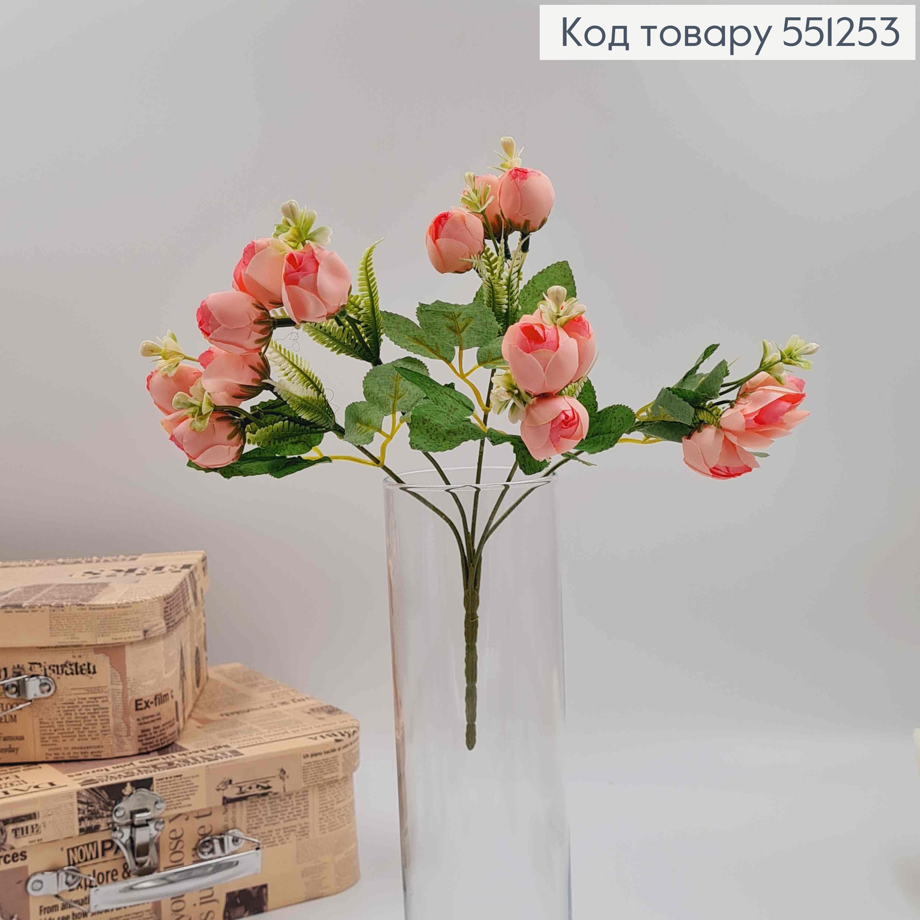 Композиция РОЖЕВА "Букет мелких пионов Камелия с декором", высотой 30см, 15 головок
