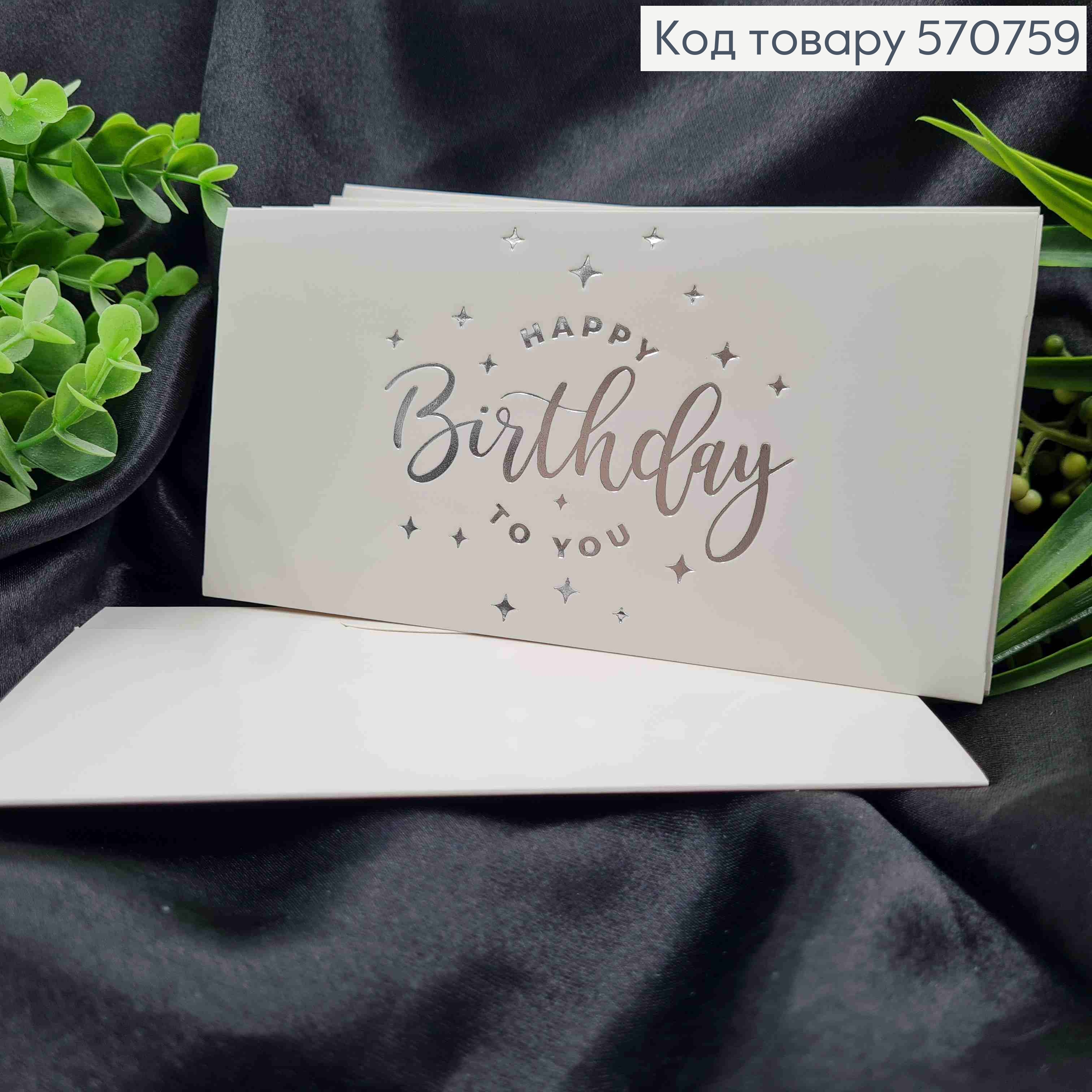 Конверт Белый с СЕРЕБРЯНЫМ тиснением "HAPPY Birthday to you", 16,5*8,5см, 10шт\уп