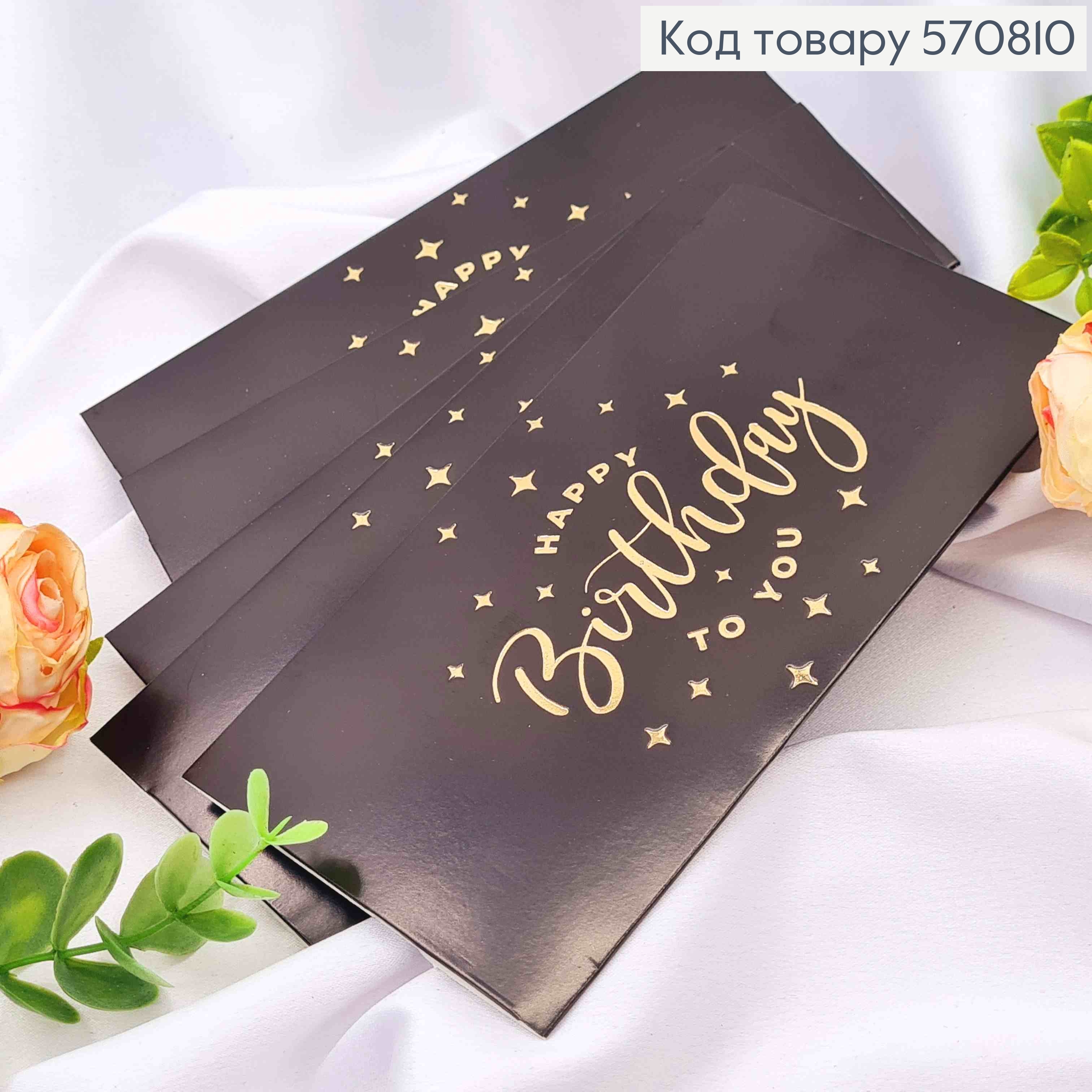 Конверт Черный с Золотым тиснением "HAPPY Birthday to you", 16,5*8,5см, 10шт\уп
