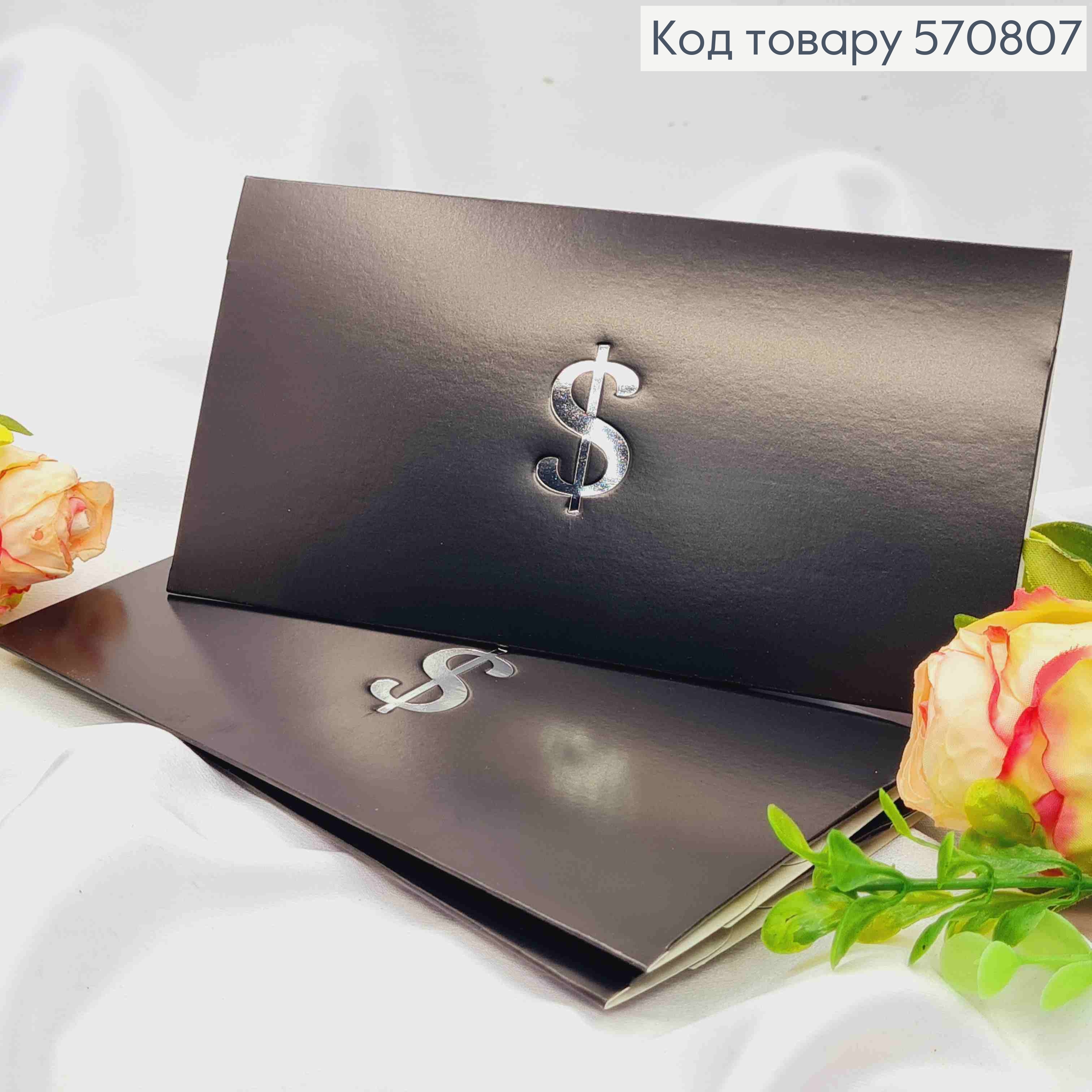 Конверт Черный с Серебряным тиснением "$", 16,5*8,5см, 10шт\уп