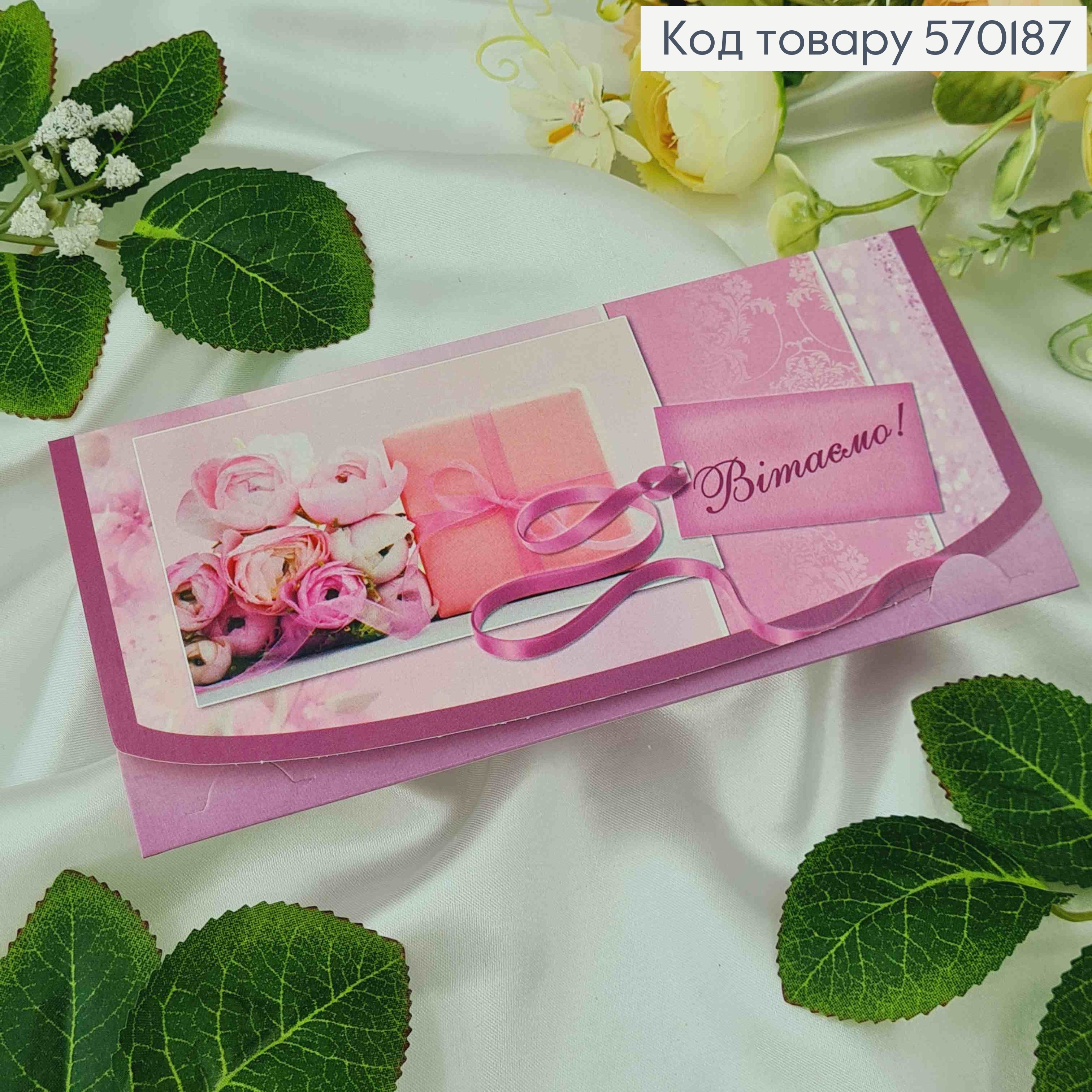 Конверт розовых тонов "Поздравляем", 17*8см, 10шт\уп