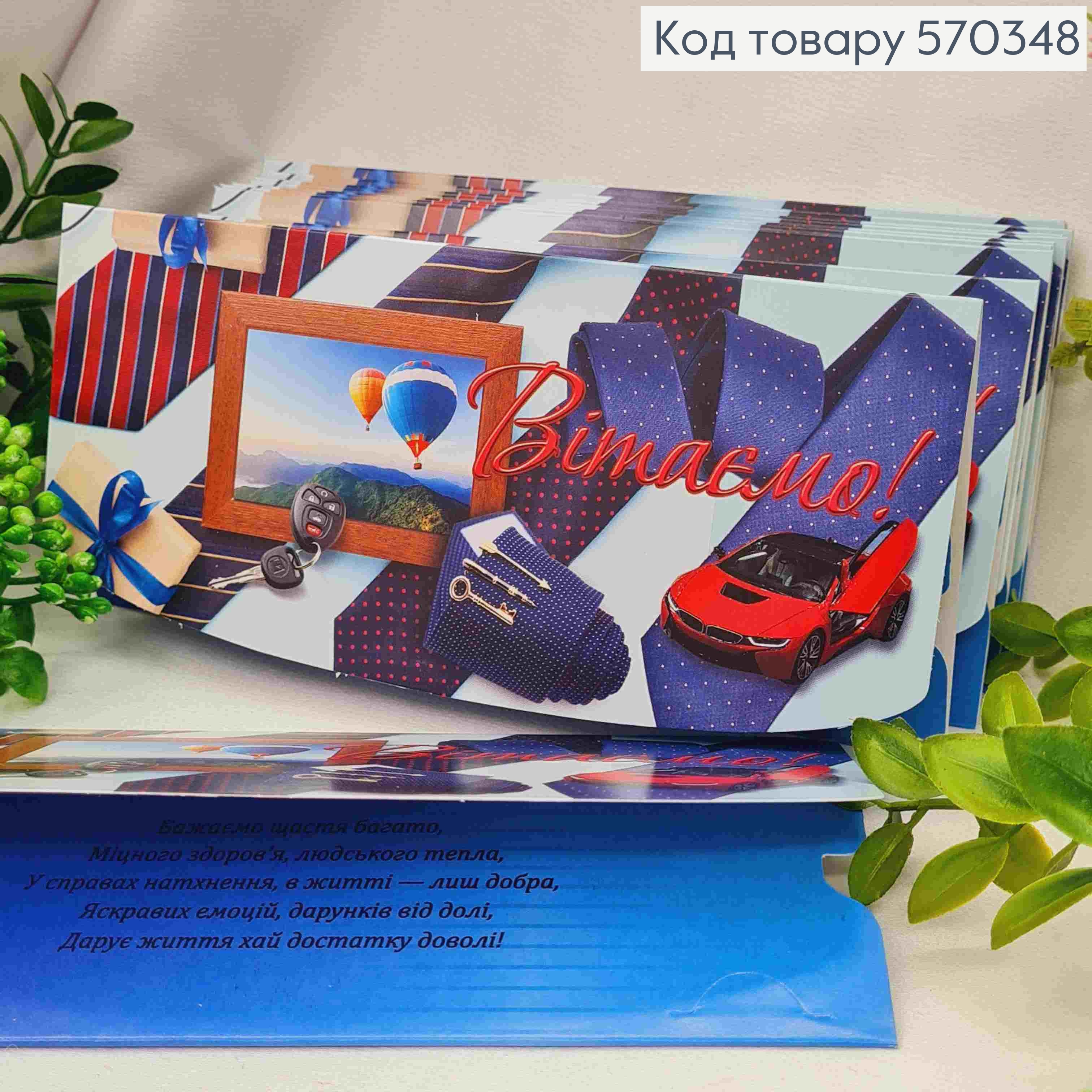 Конверт "Поздравляем!", с авто и галстуком, 17*8см, 10шт\уп