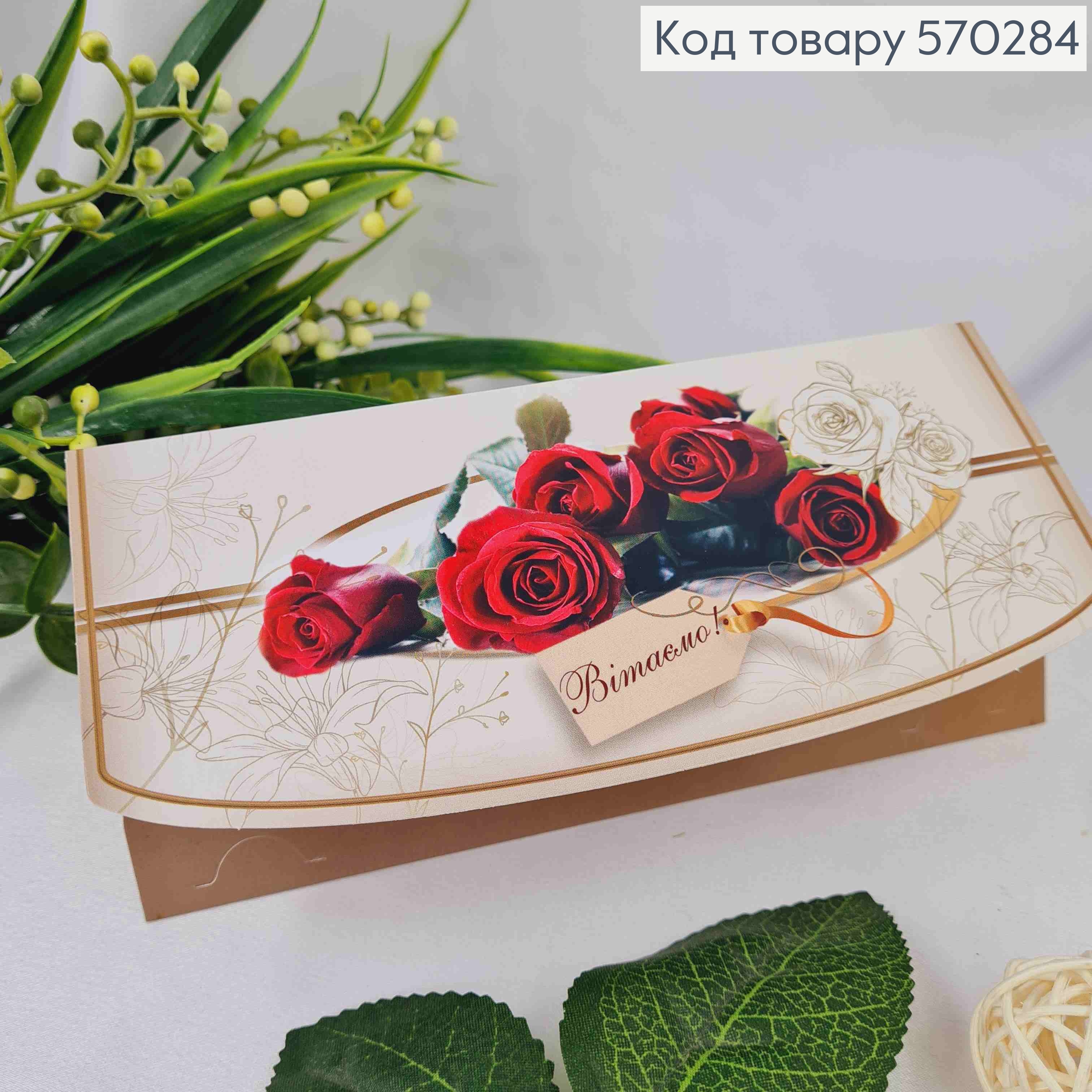Конверт "Поздравляем" с Красными розами, 17*8см 10шт/уп