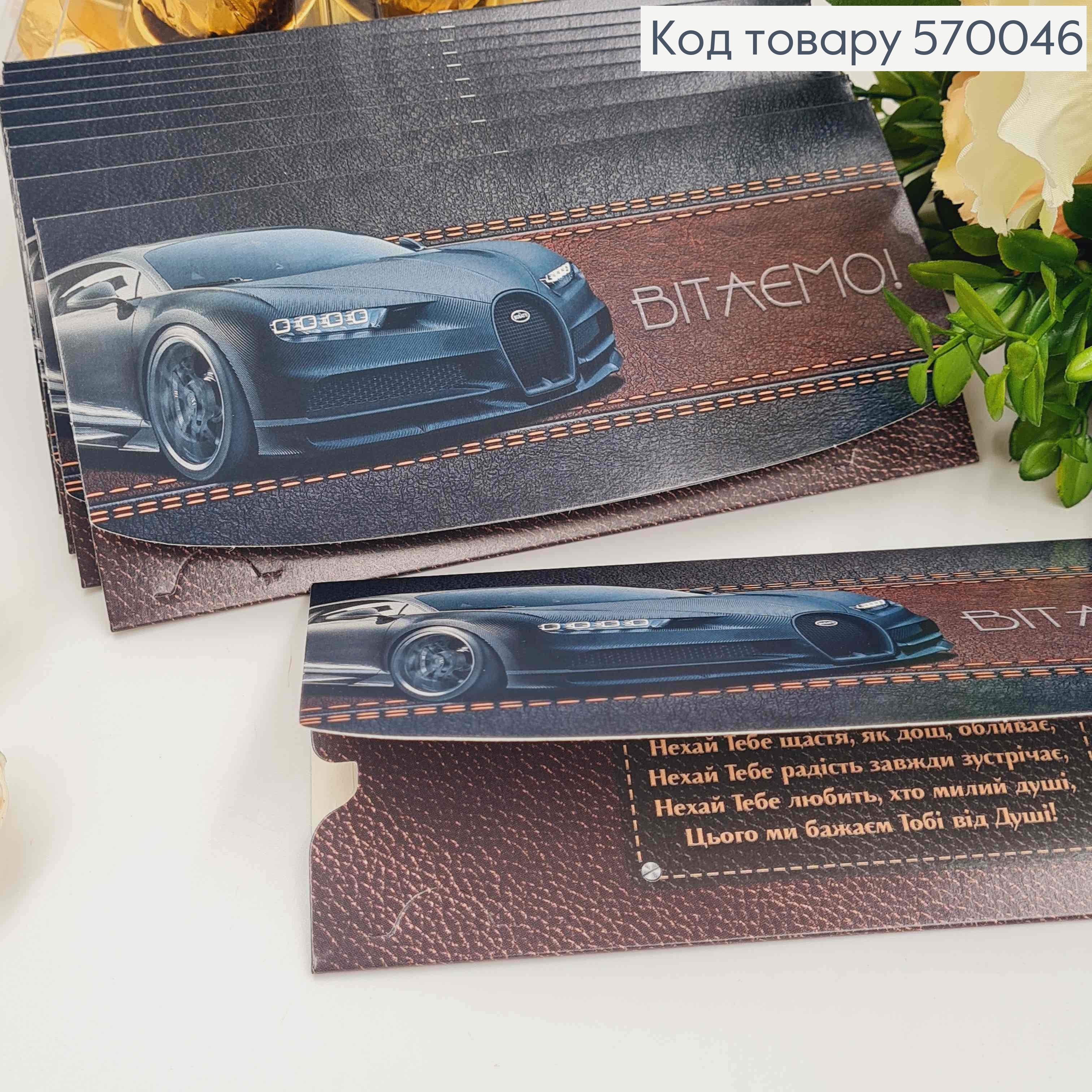 Конверт "Приветствуем!", С Черной машиной "Бугатти", 17*8см, 10шт\уп