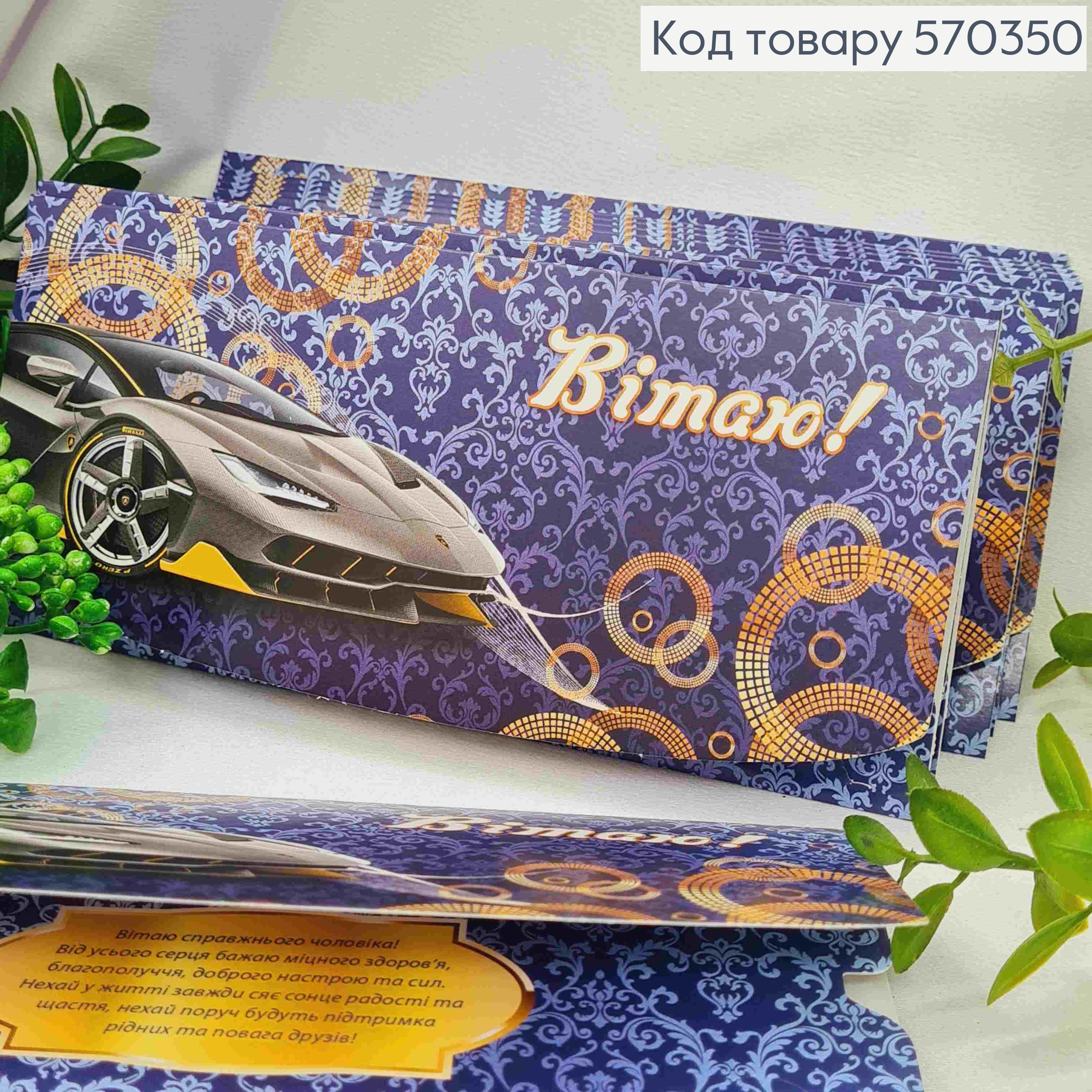 Конверт "Поздравляю!", с автомобилем, 17*8см, 10шт\уп