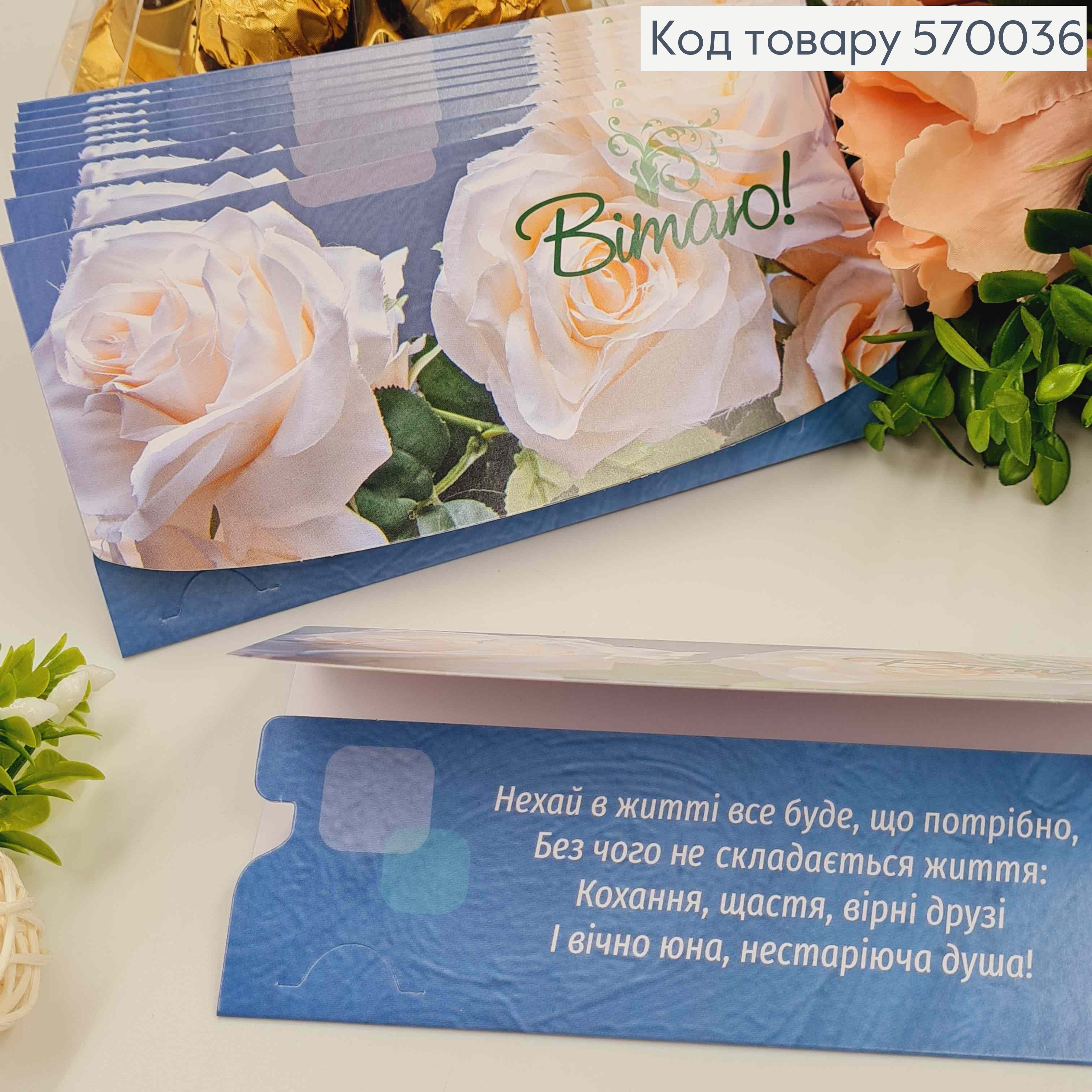 Конверт "Привет!", С Белыми Розами, 17*8см, 10шт\уп