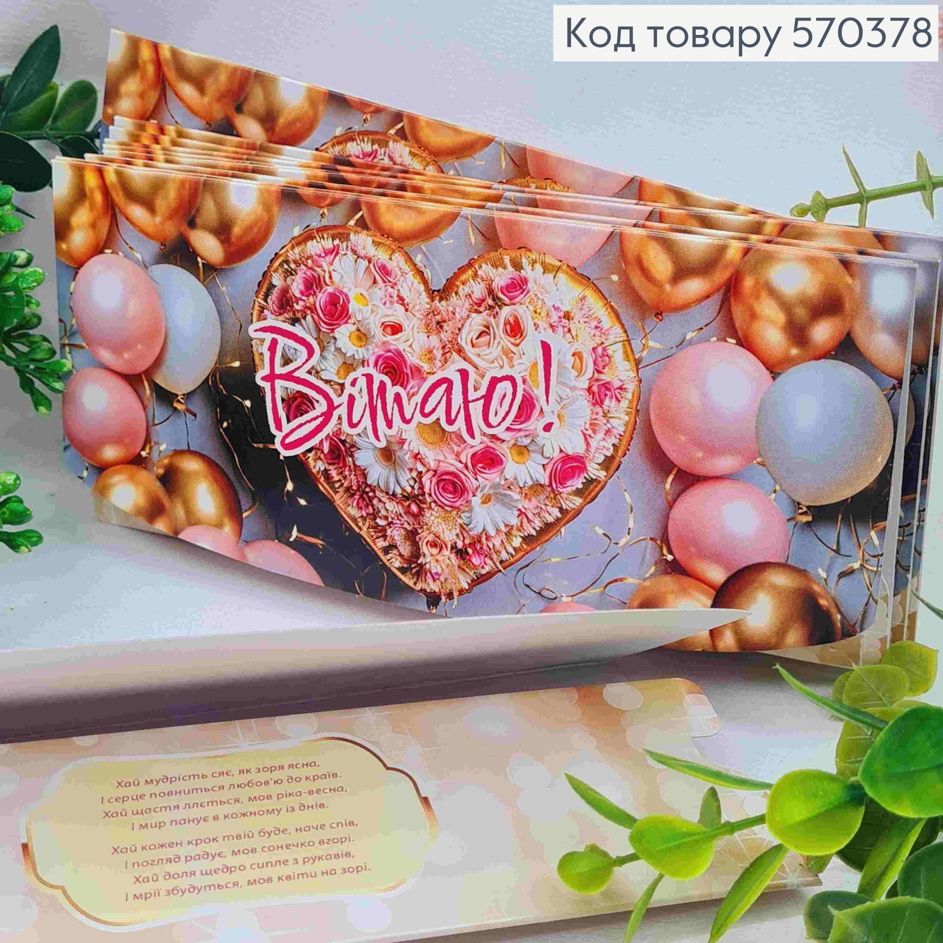 Конверт "Поздравляю!", с цветами и воздушными шарами, 17*8см, 10шт\уп
