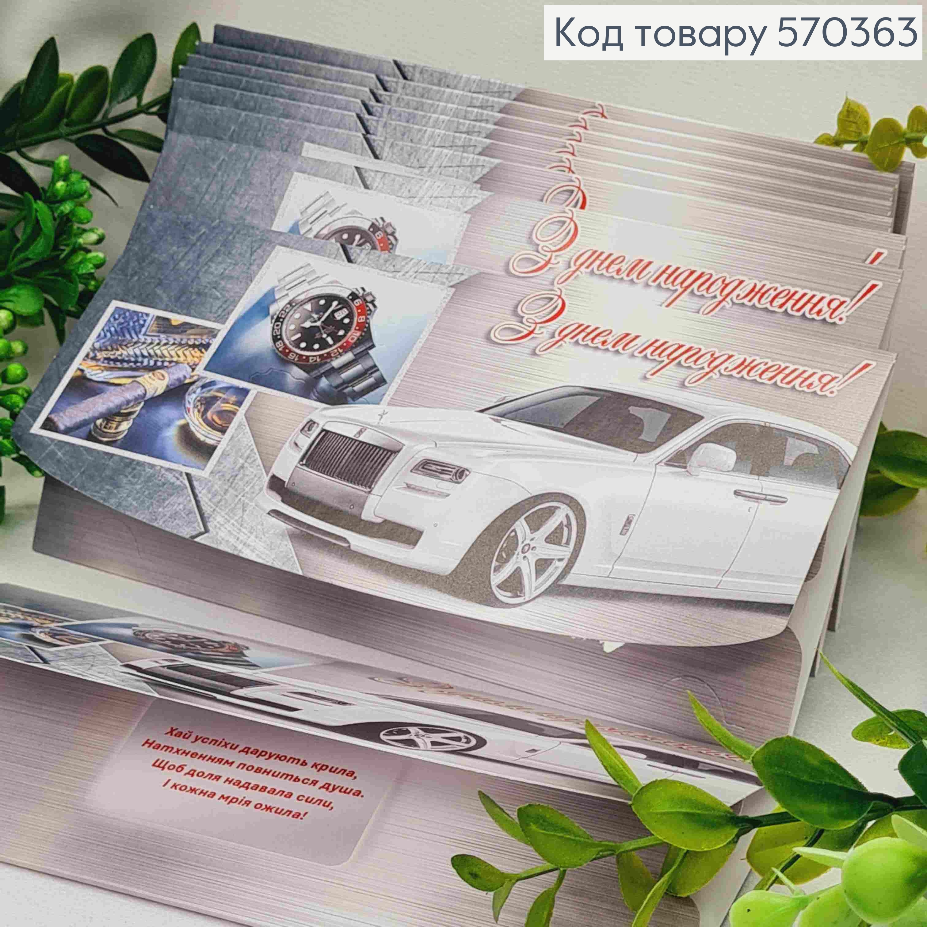Конверт "С Днем Рождения!", с автомобилем и часами, 17*8см, 10шт\уп