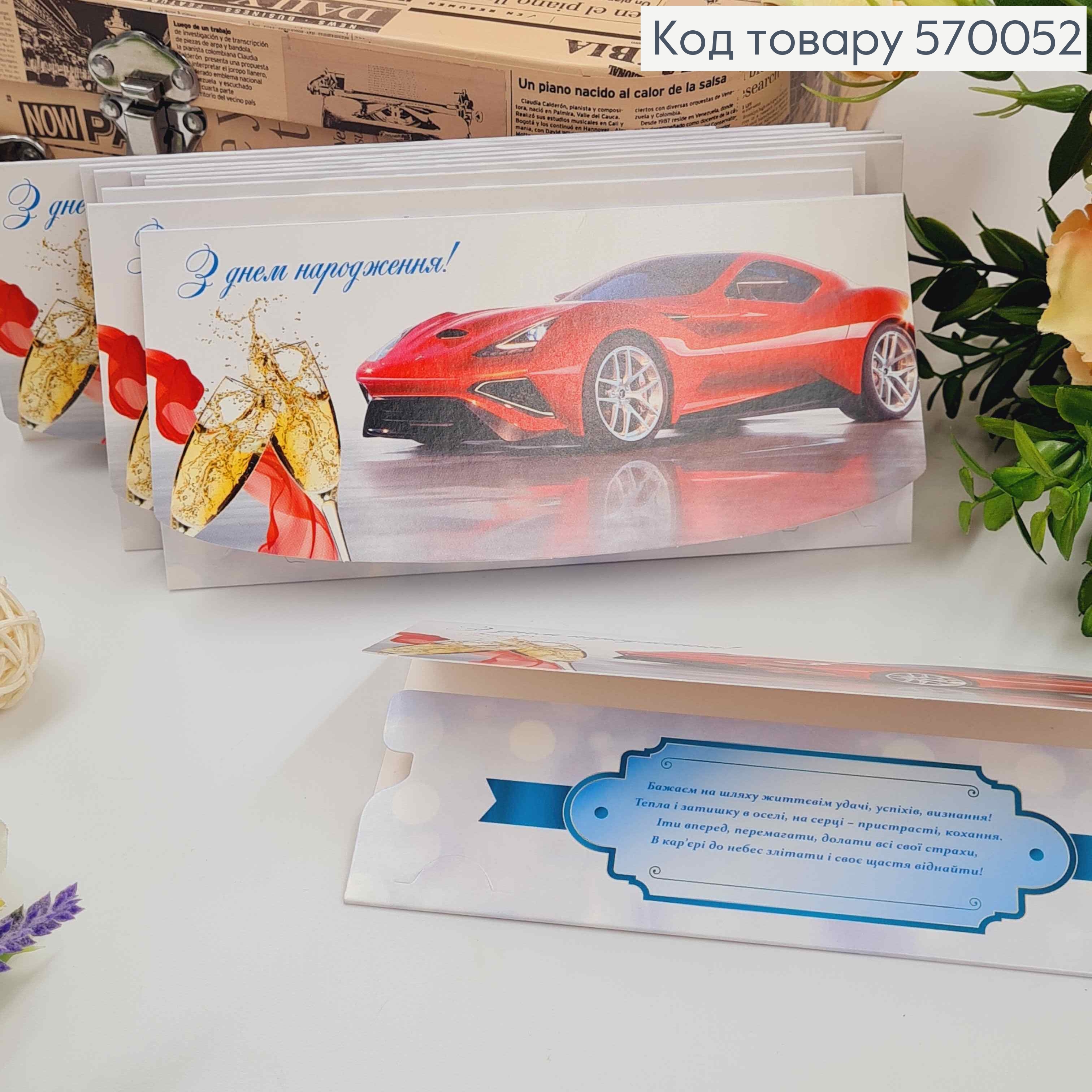 Конверт "С Днем рождения", С Красным "Порше" и бокалами шампанского, 17*8см, 10шт\уп