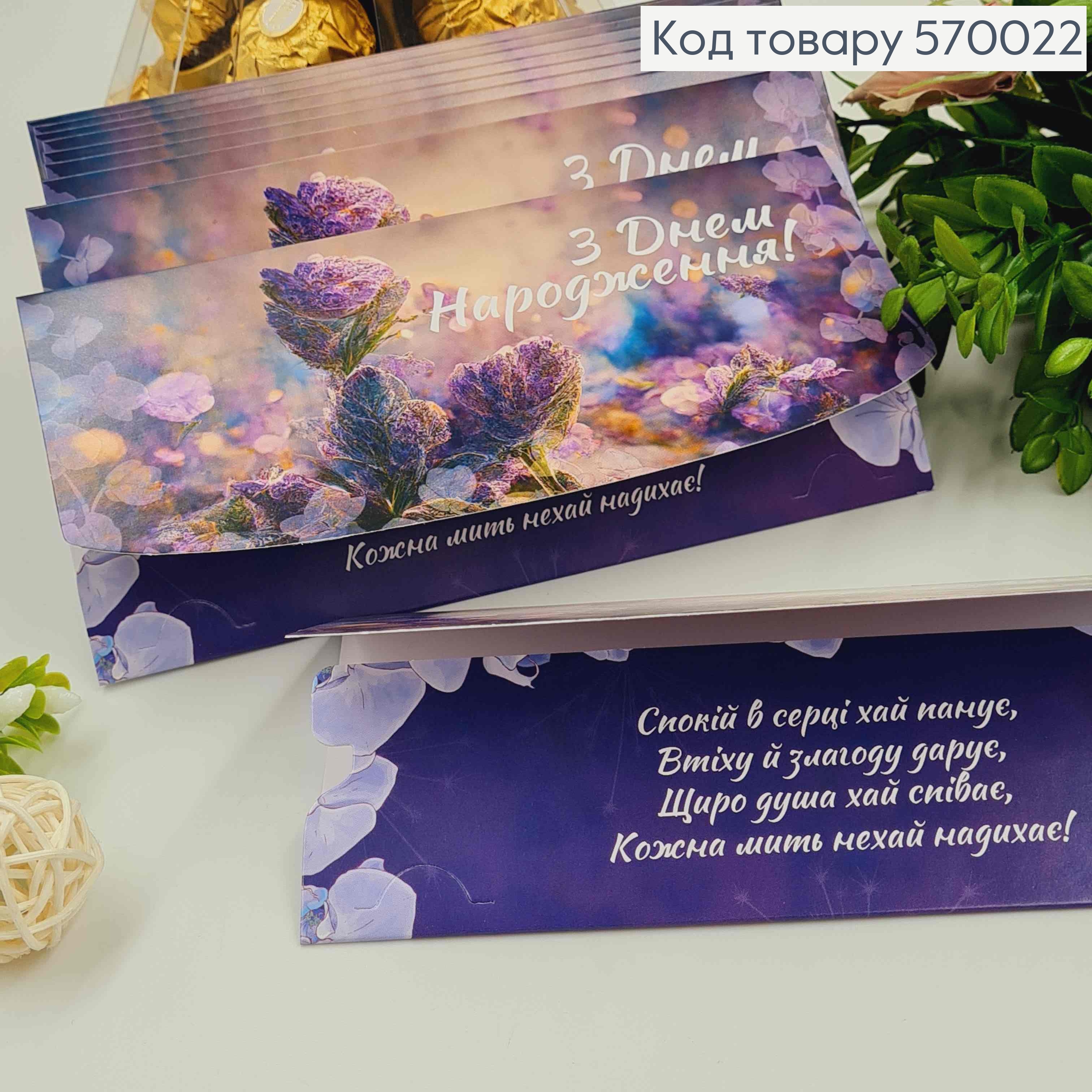 Конверт "С днем Рождения", с Фиолетовым полем цветов, 17*8см, 10шт\уп