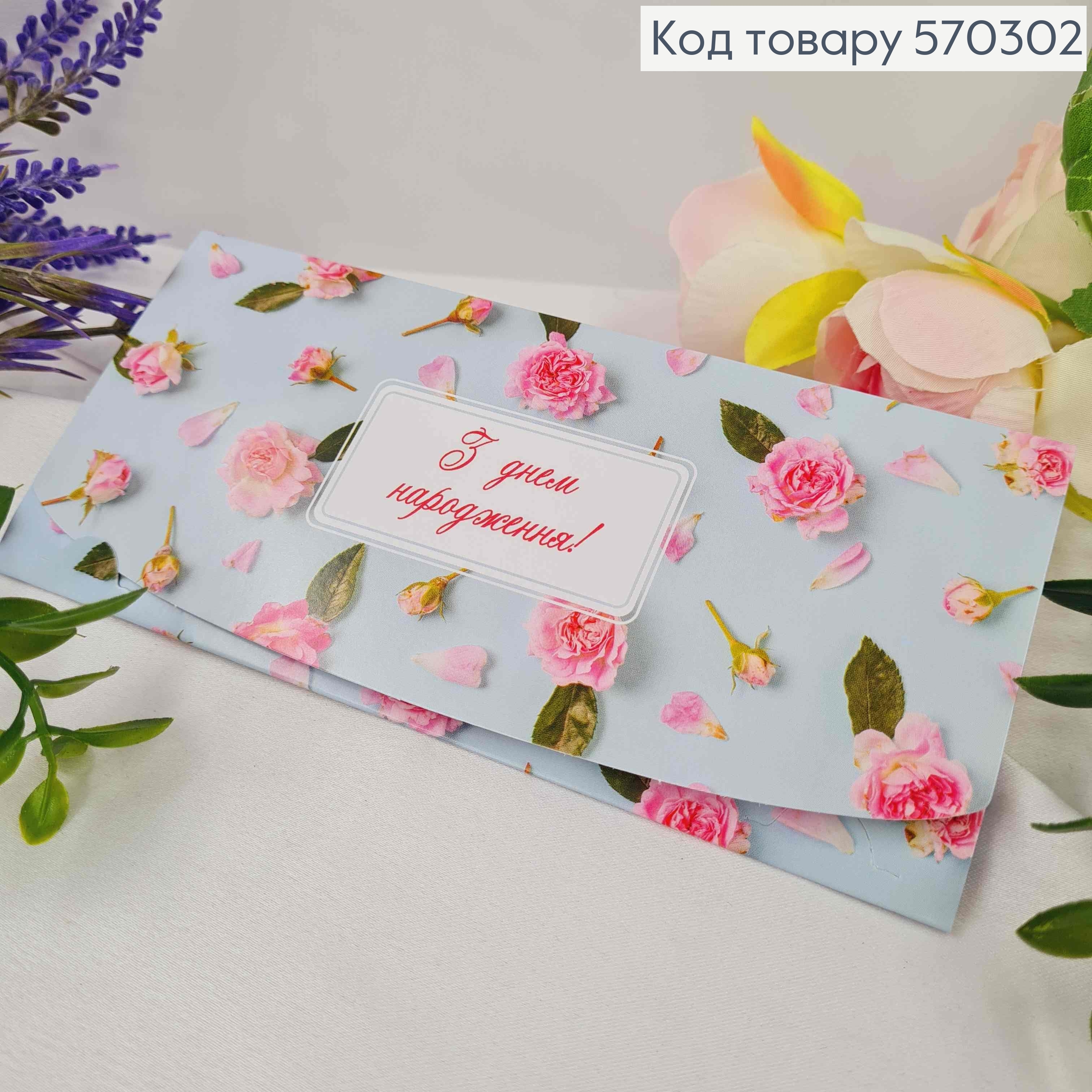 Конверт "С днем рождения!", с розами, 17*8см, 10шт\уп