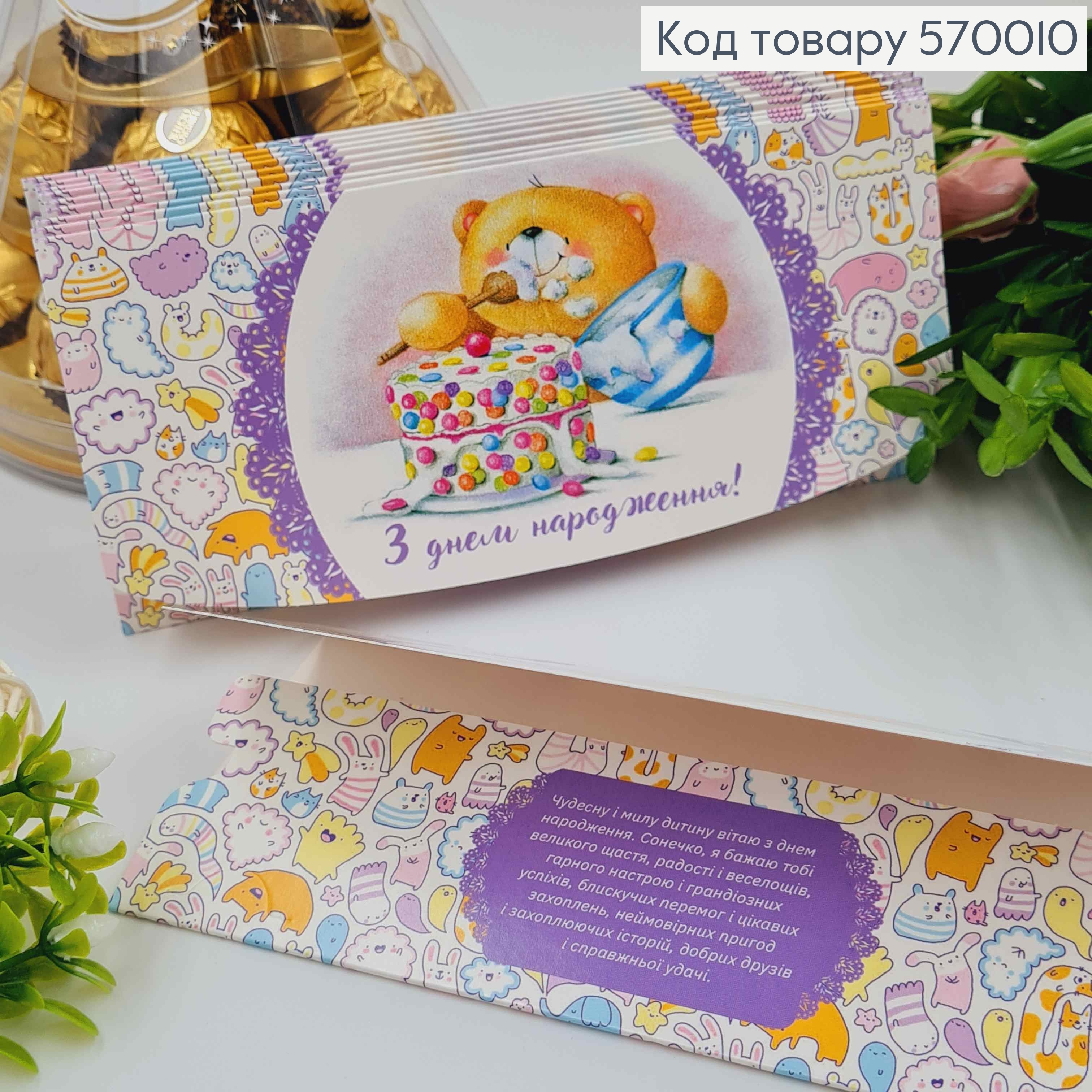 Конверт "С днем Рождения", с мишкой торт, 17*8см, 10шт\уп