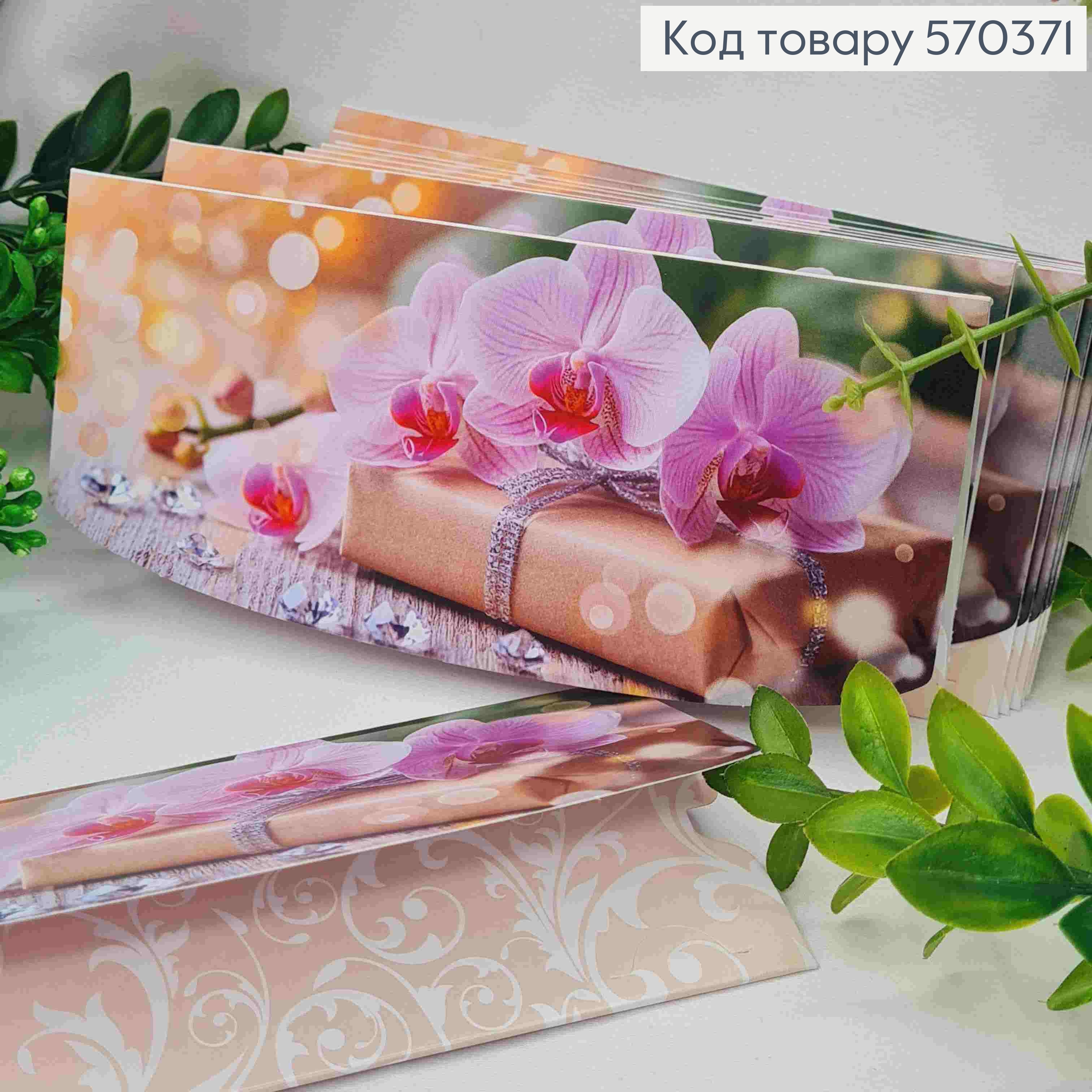 Конверт с принтом орхидея и подарок, 17*8см, 10шт\уп