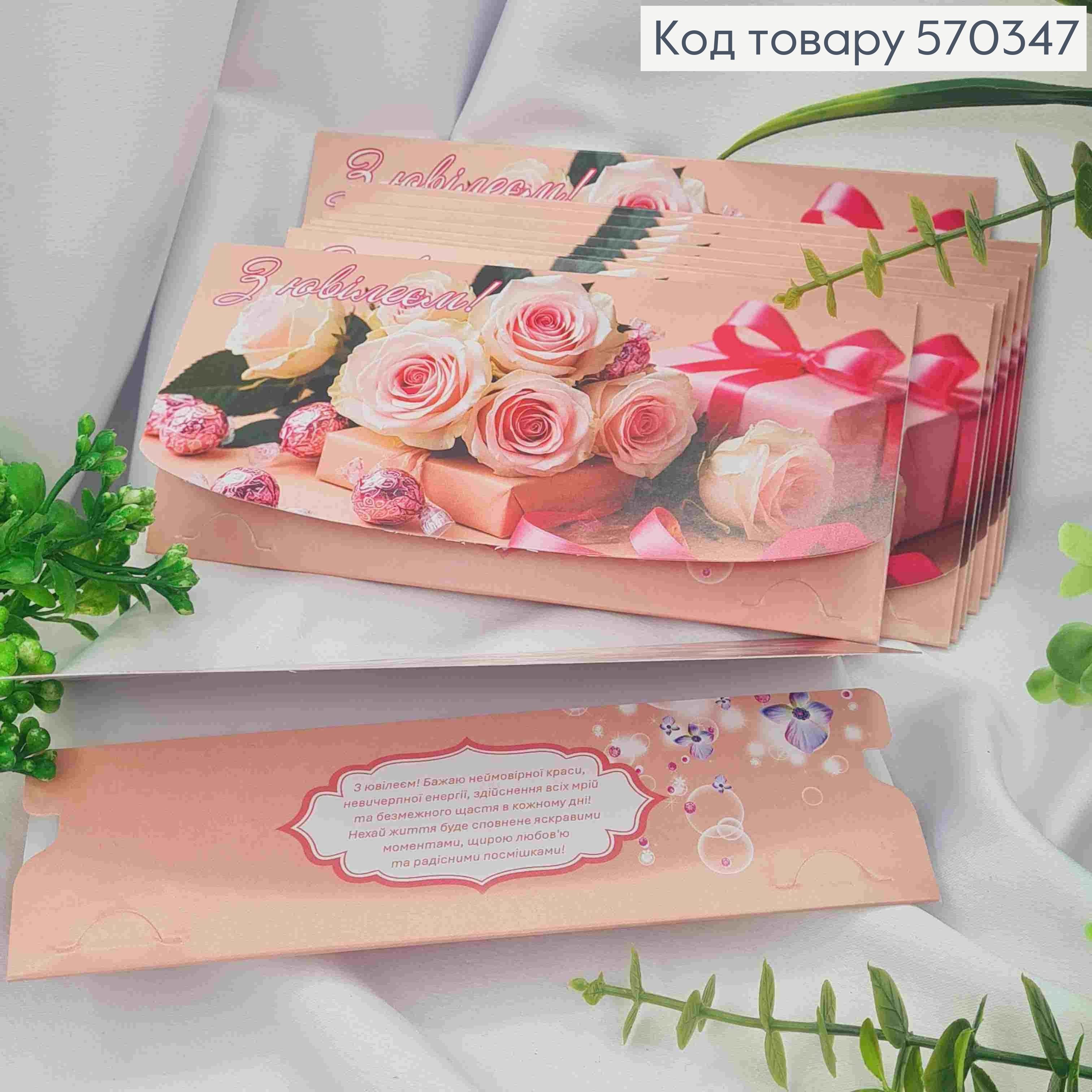 Конверт "С Юбилеем!", с конфетами и цветами, 17*8см, 10шт\уп