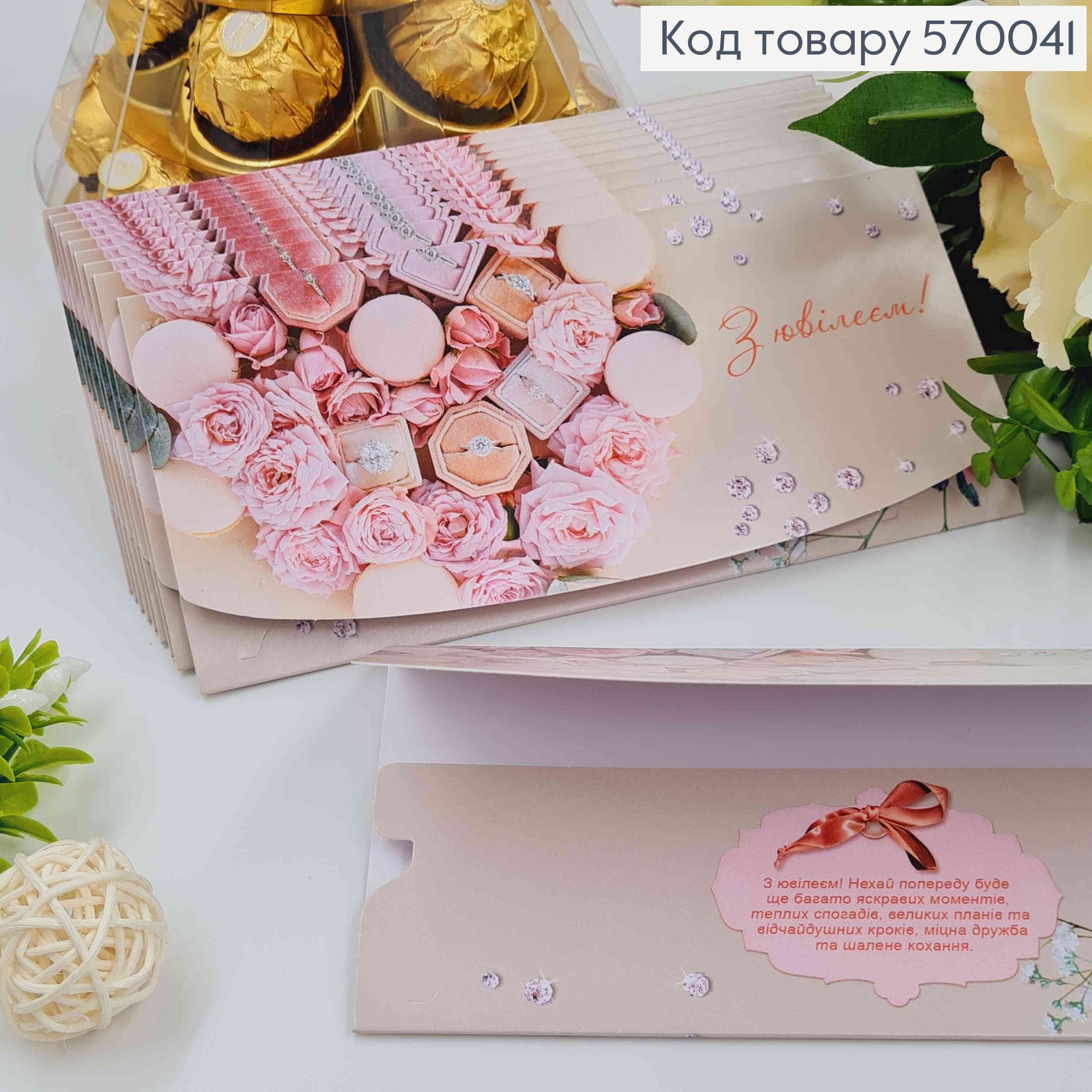 Конверт "С Юбилеем!", с цветами и колечками, 17*8см, 10шт\уп