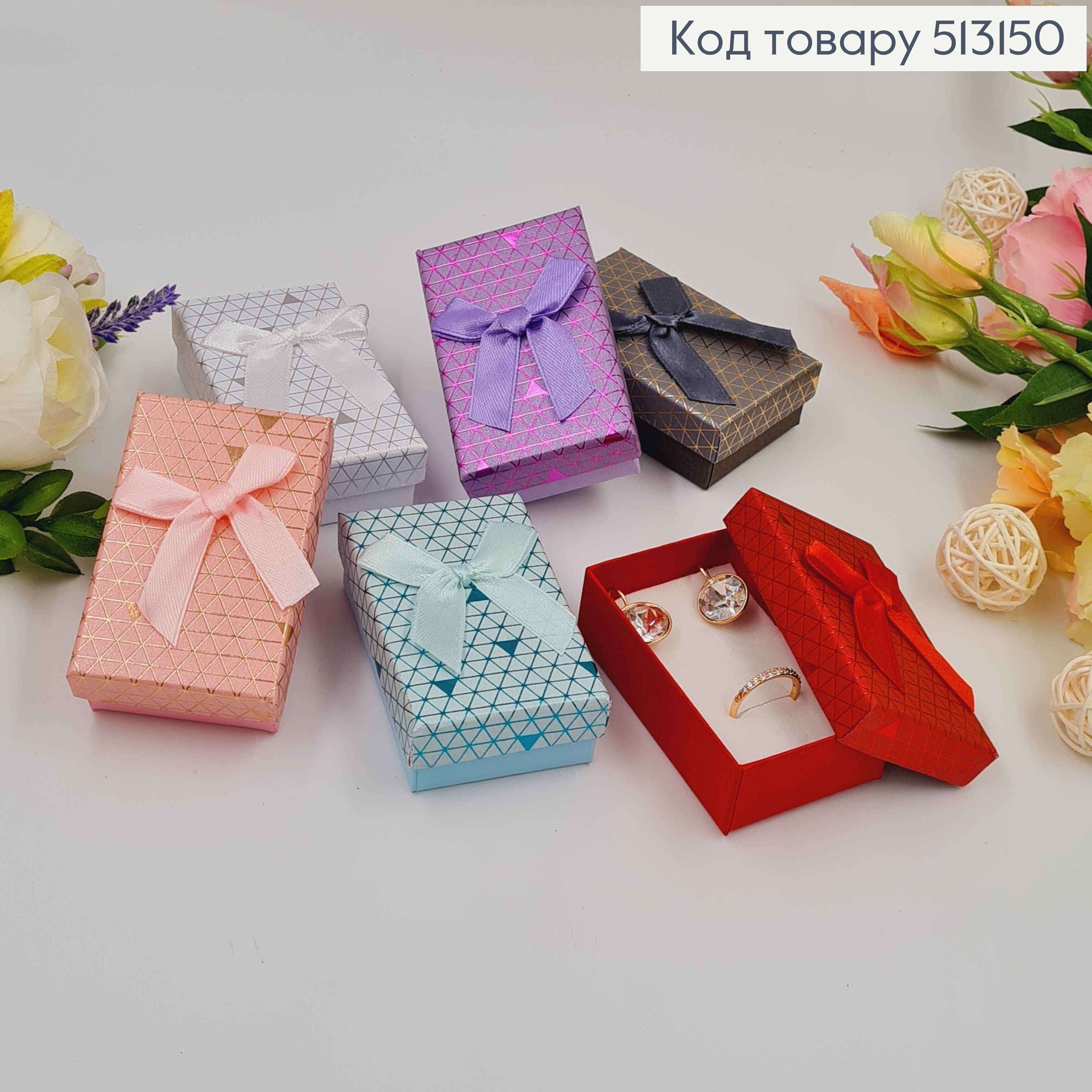 Коробка прямоугольная "Треугольнички с блеском", 8*5*2см, в ассортименте