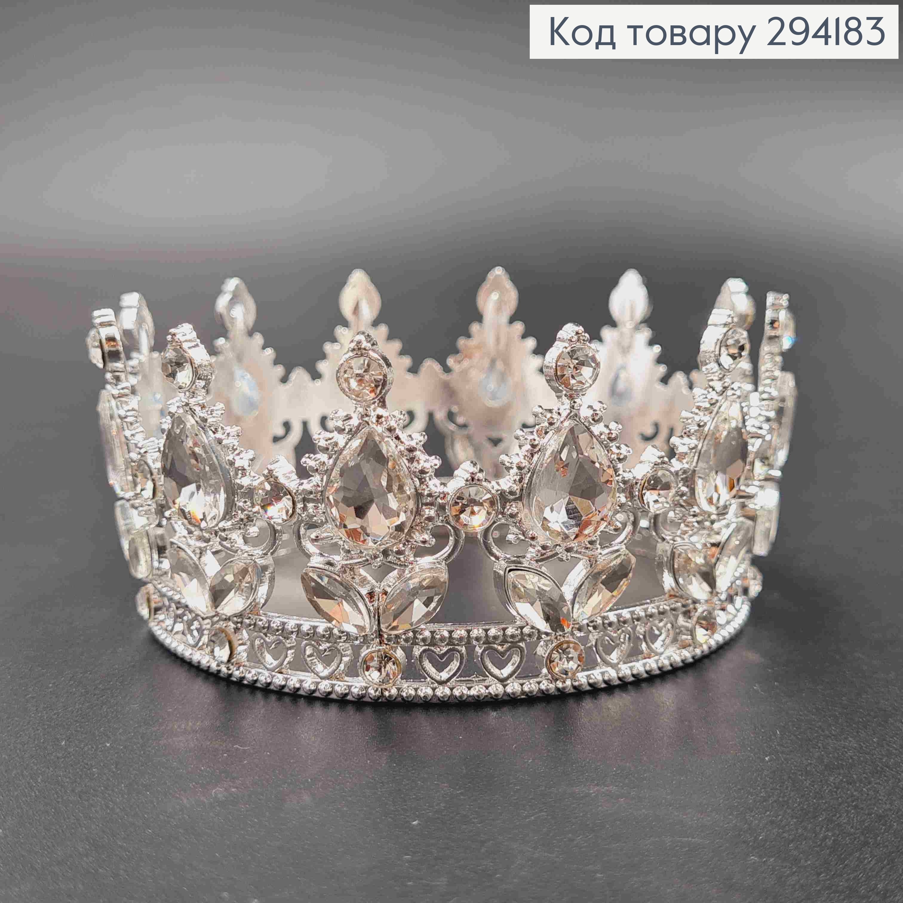 Корона под Серебро, "Королевская" с блестящими камнями, диаметр 6см, высота 4см (можно на торт) 294191 фото