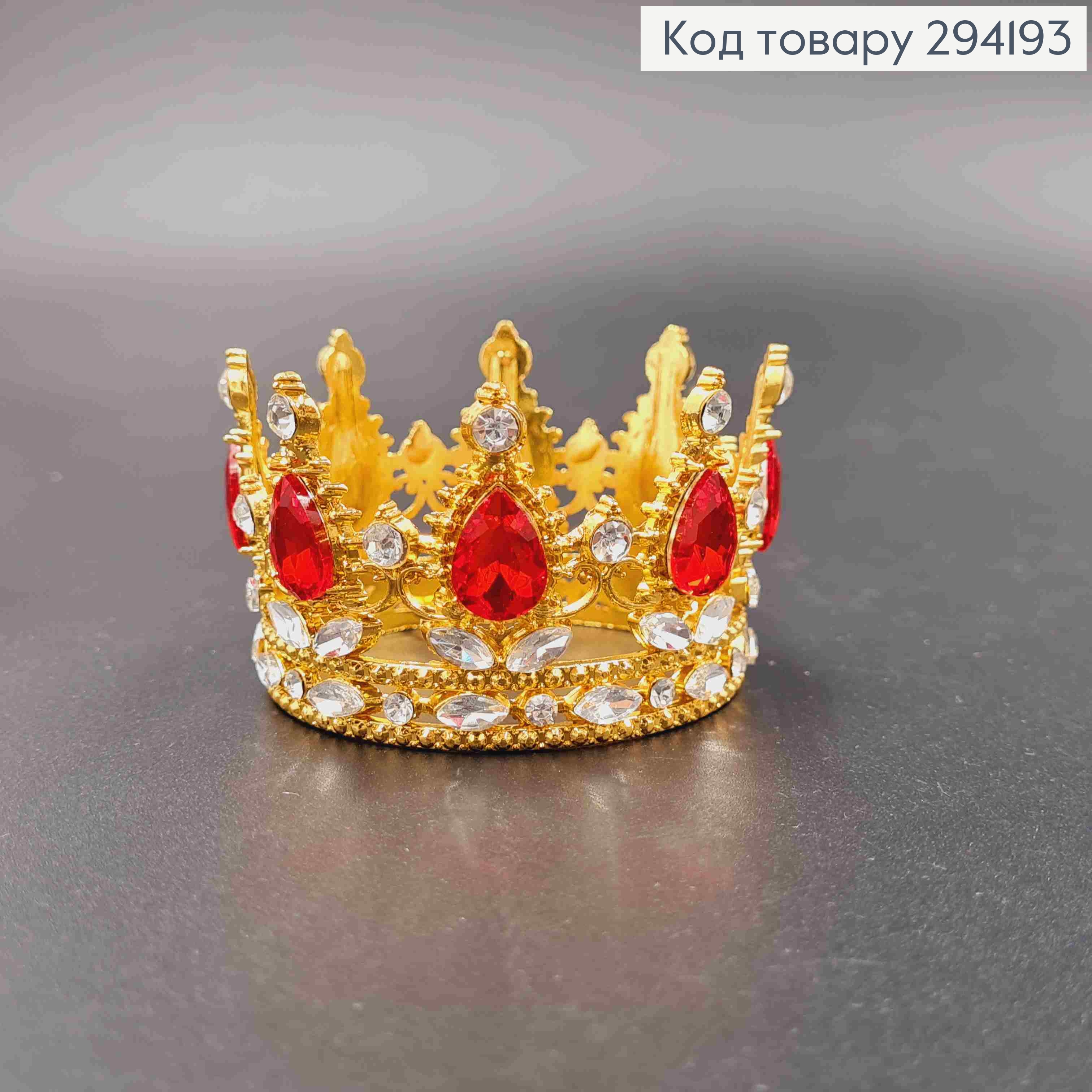 Корона под Золото, "Королевская" с КРАСНЫМИ камушками, диаметр 8см, высота 4,5см (можно на торт) 294187 фото