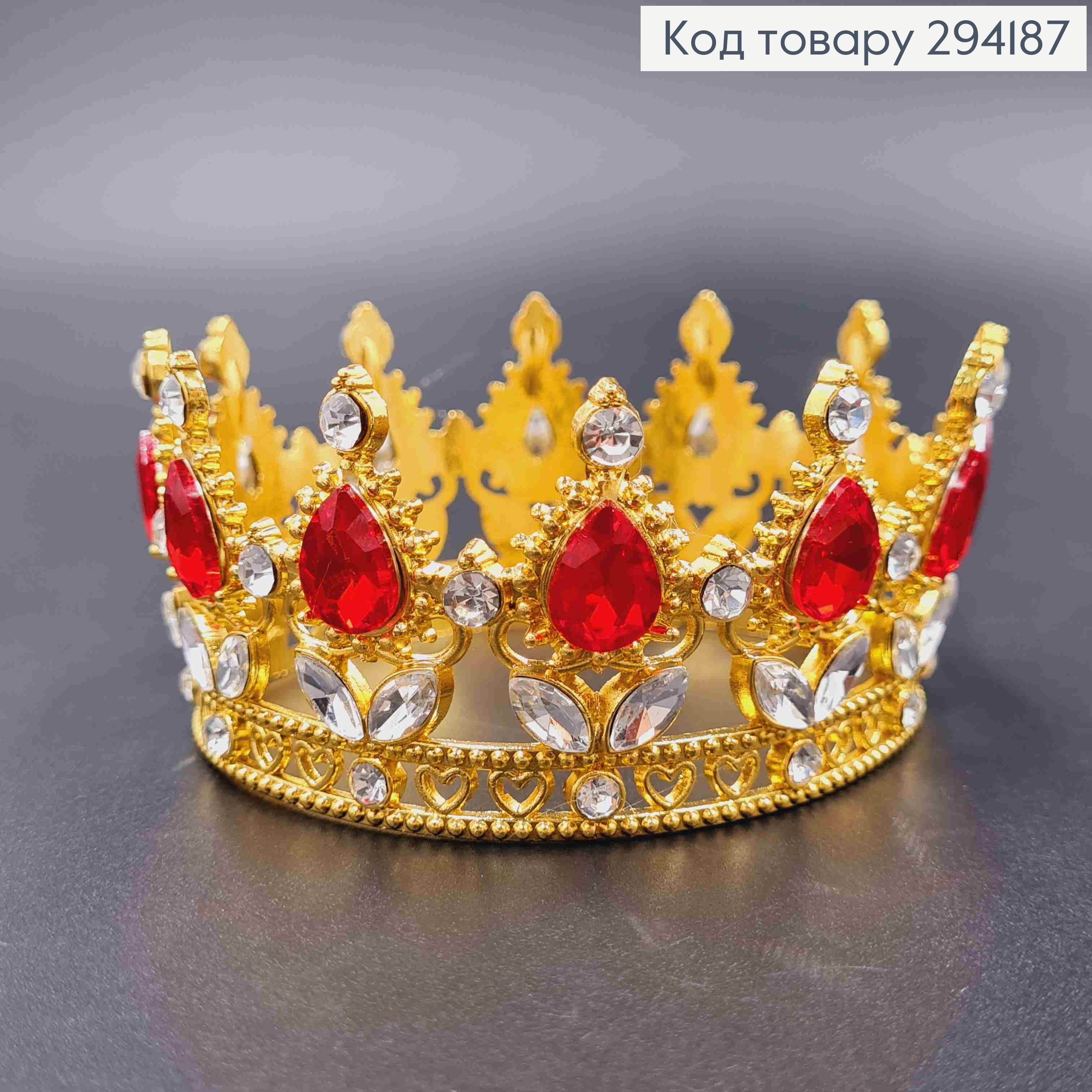 Корона под Золото, "Королевская" с КРАСНЫМИ камушками, диаметр 6см, высота 4см (можно на торт) 294193 фото