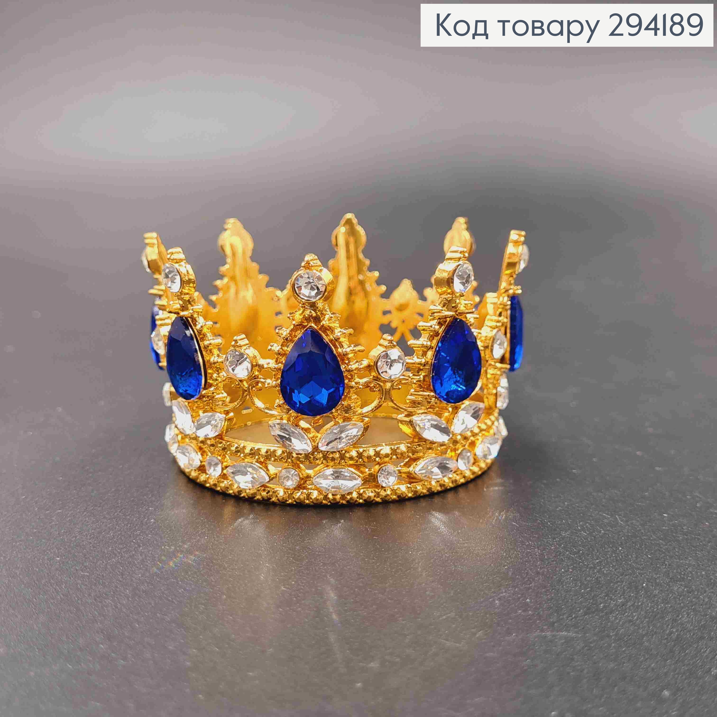 Корона под Золото, "Королевская" с СИНИМИ камушками, диаметр 8см, высота 4,5см (можно на торт) 294185 фото