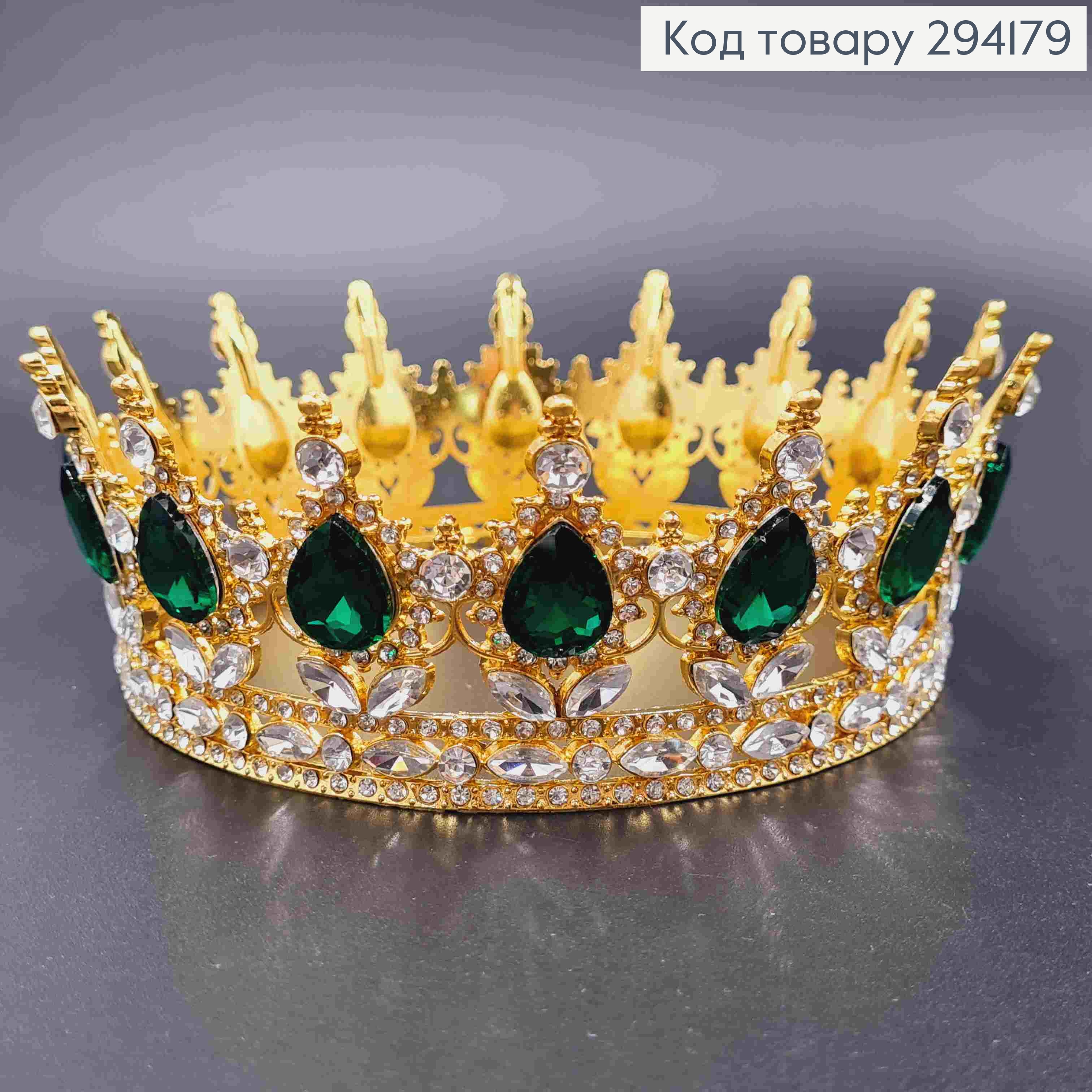 Корона под Золото, "Королевская" с ЗЕЛЕНЫМИ камушками, диаметр 8см, высота 4,5см (можно на торт) 294184 фото