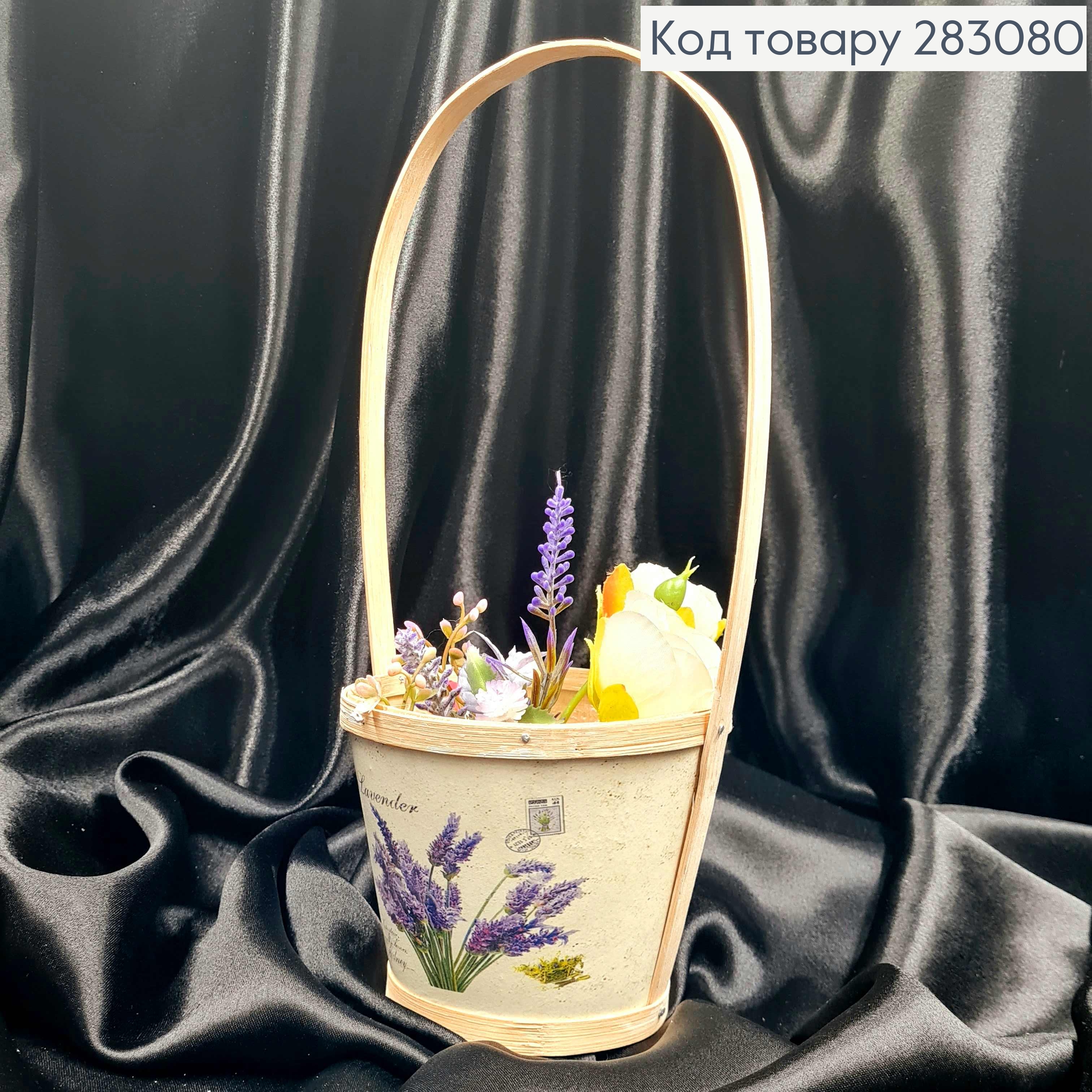 Корзина декорированная ЛАВАНДА (Глубина 9см+ ручка 21см, Диаметр верх: 12см, низ:8см, ПОЛЬША