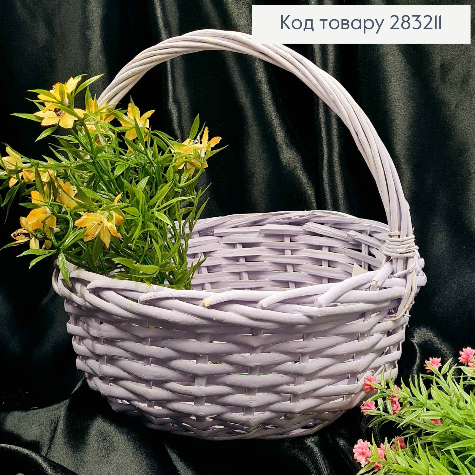 Корзина крашеная маленькая круглая, сиреневого цвета, (диам.23см), (глуб.10см), (ручка 14см)